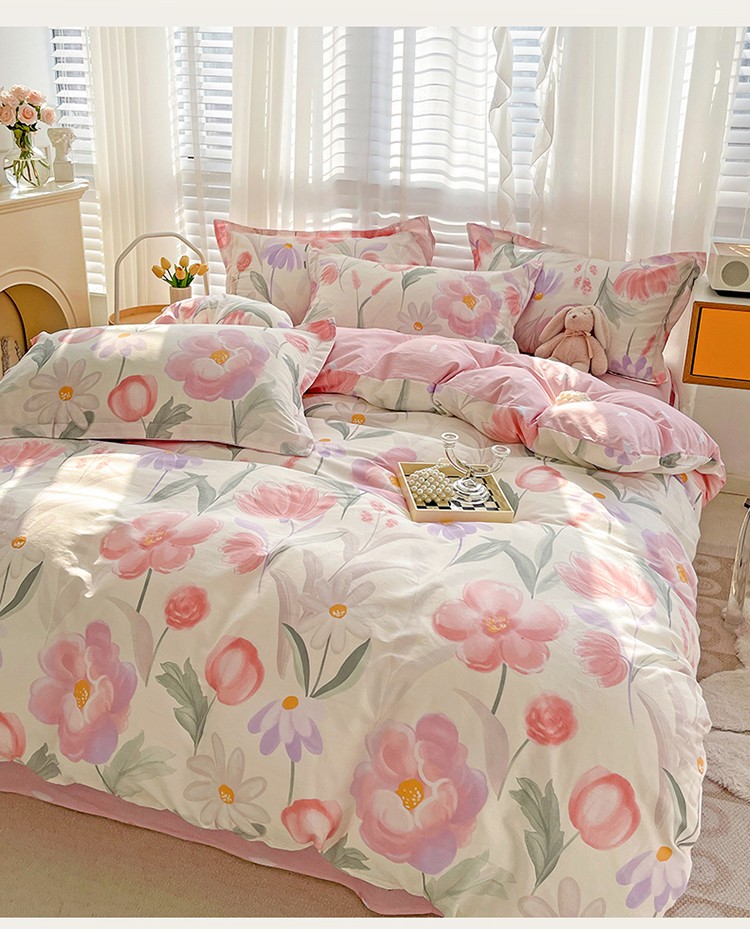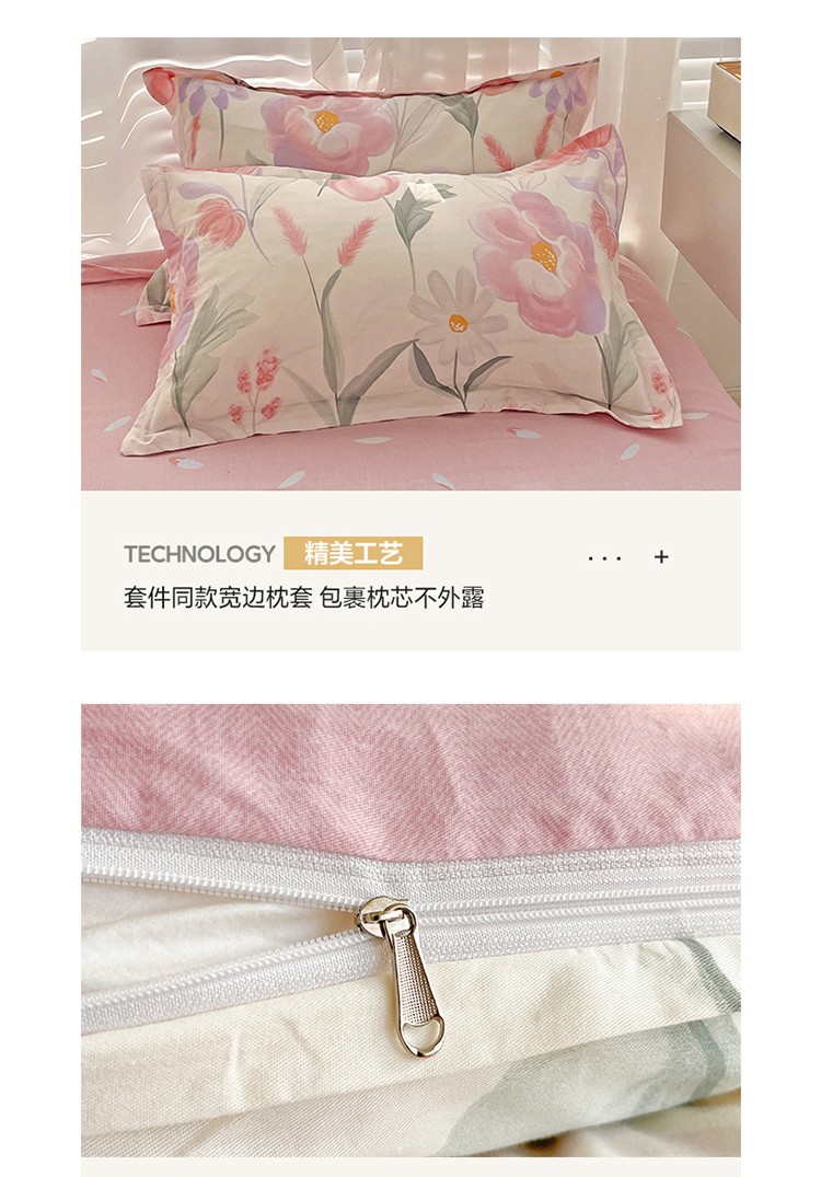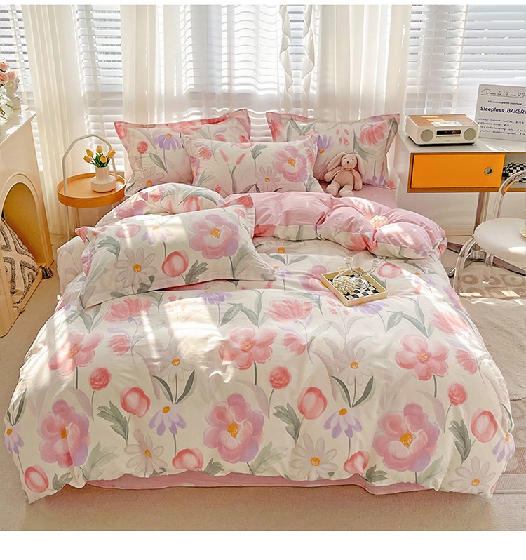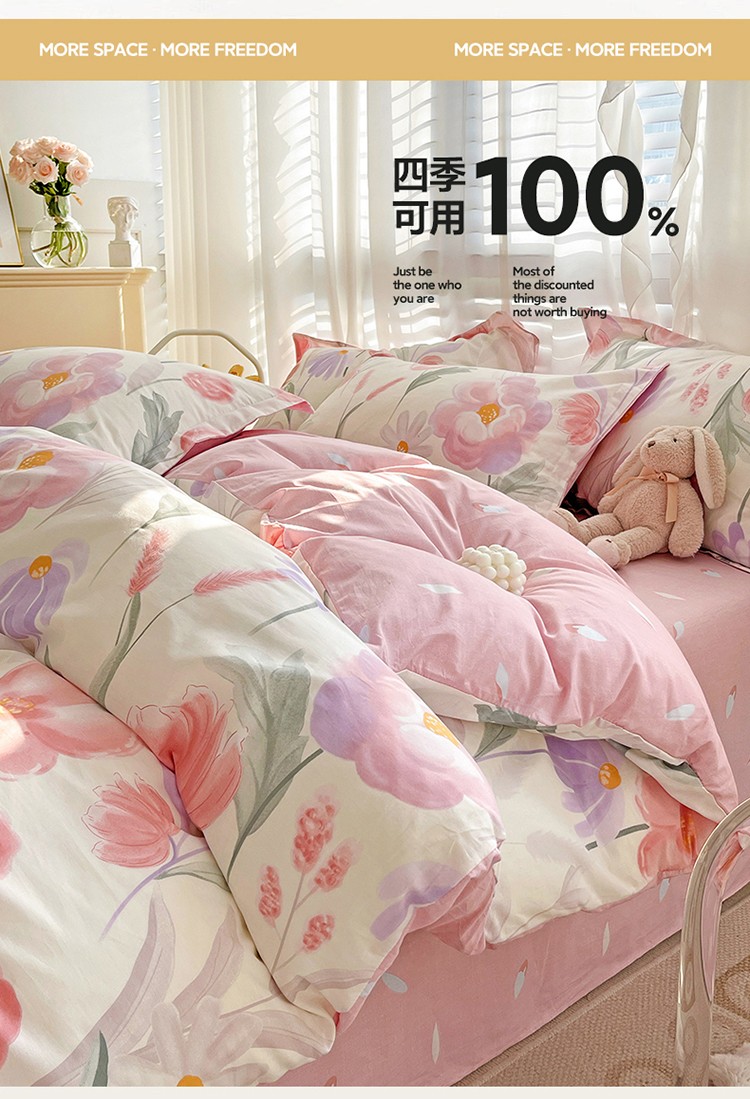 盛馨家纺 全棉ins北欧风高支高密全棉喷气小清新纯棉四件套 花胥梦粉