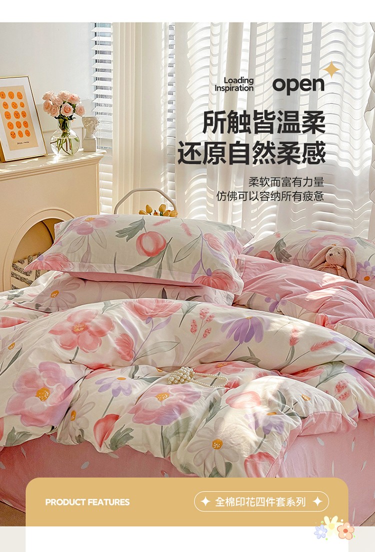 总盛馨家纺 2023新款ins北欧风高支高密全棉喷气小清新纯棉四件套,花丛兔,锦鲤,快乐小狗,梦幻,梦境小兔,入夏,若微,溪沐,叶墨新晨,樱桃兔,星球家园,草莓兔,花粉兔,花花小熊,花开富贵,花蓝兔,花胥梦粉,花韵,狂想曲蓝,萌宠乐园,蜜桃公主,莫奈花园蓝,奇妙幻想蓝,曲奇小熊,圣歌娜,诗情画意,桃桃兔,甜蜜小花,文特森 咖,小黄鸭,叶叶小花,油画草莓,丛林家园,粉色花海,可可大草莓,浪漫花朵,满庭花开,漫时光,暖阳紫,郁金香小兔