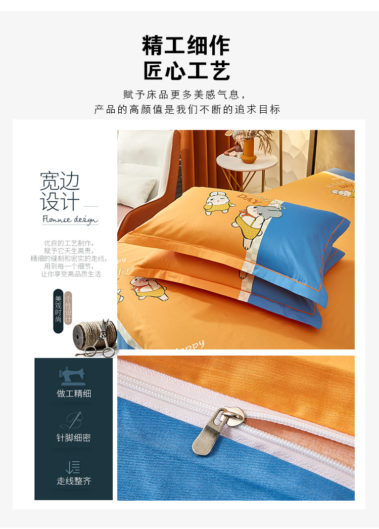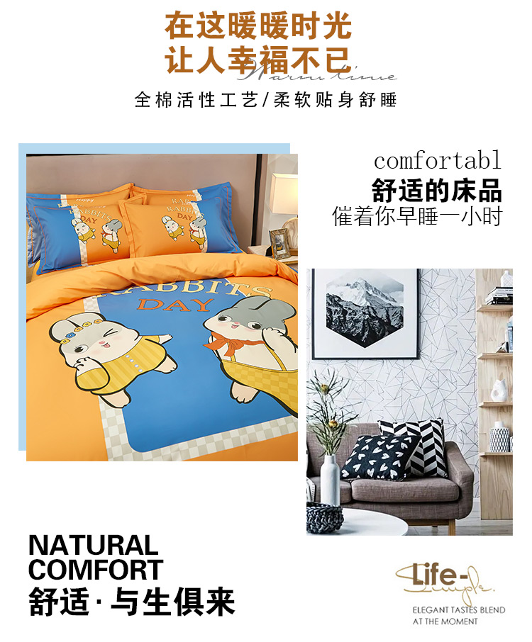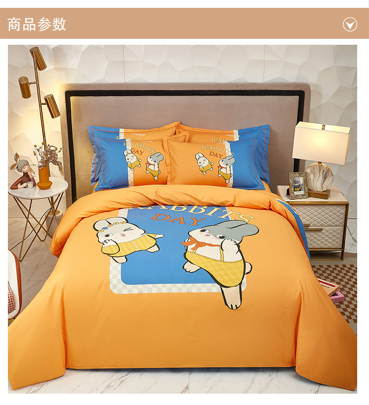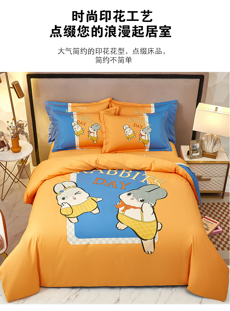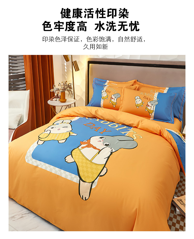 商品名称:雲归梦2023新款13372全棉活性大版印花简约居家四件套 波比兔桔