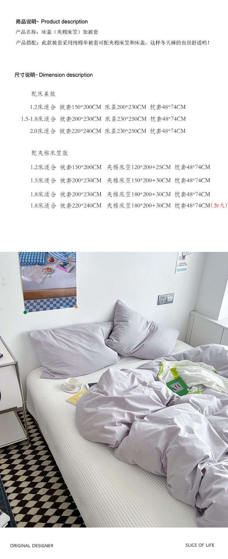 1.8m被套加大夹棉床笠款四件套