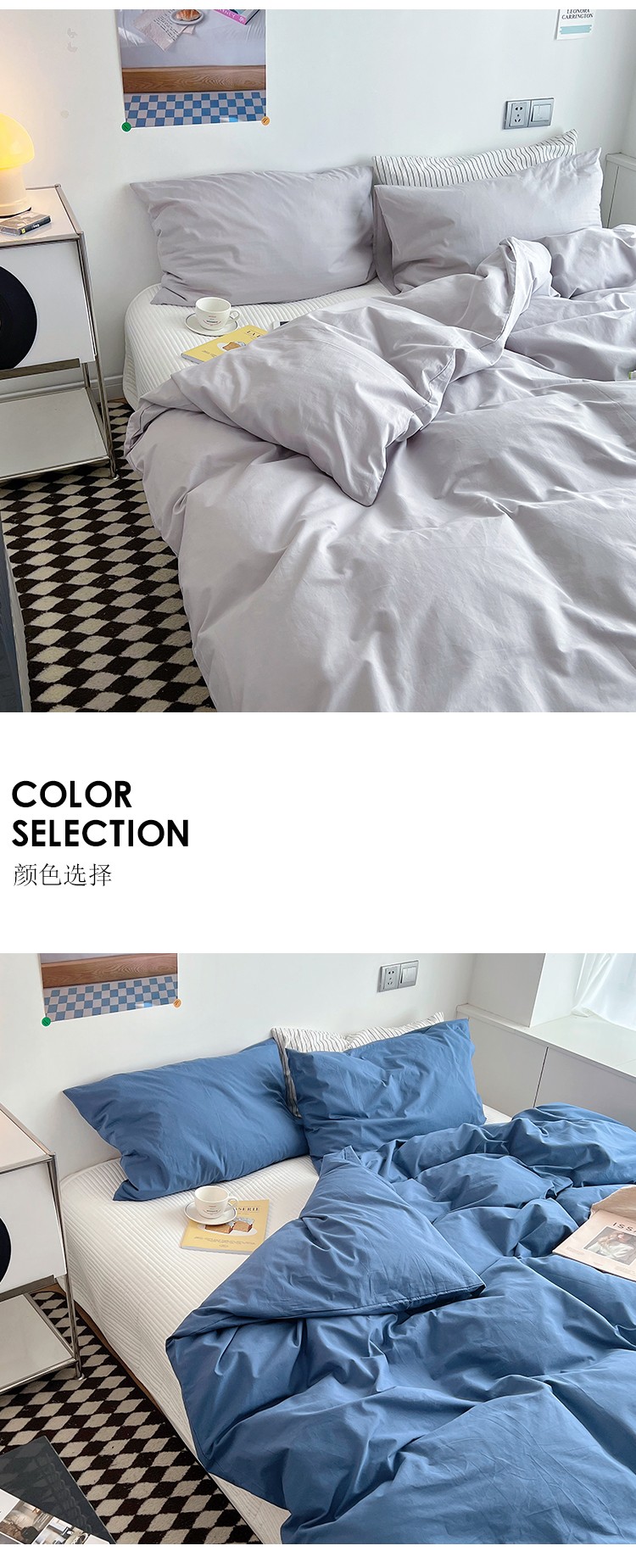 双拼全棉水洗棉纯棉四件套ins简约北欧纯色床笠款套件,双拼白+浅蓝,双拼白+薇薇紫,双拼海蓝+浅蓝,双拼琥珀+鹅黄,双拼焦糖+奶茶,双拼螺旋藻绿+鹅黄,双拼奶茶+鹅黄,双拼牛油果+鹅黄,双拼浅蓝+鹅黄,双拼树莓红+杏仁白,双拼水绿+螺旋藻绿,双拼豌豆青+杏仁白,双拼杏仁白+螺旋藻绿,薇薇紫+杏仁白,浅灰+杏仁白,双拼藏青+浅灰,双拼花青灰+浅灰,双拼霁色+浅灰