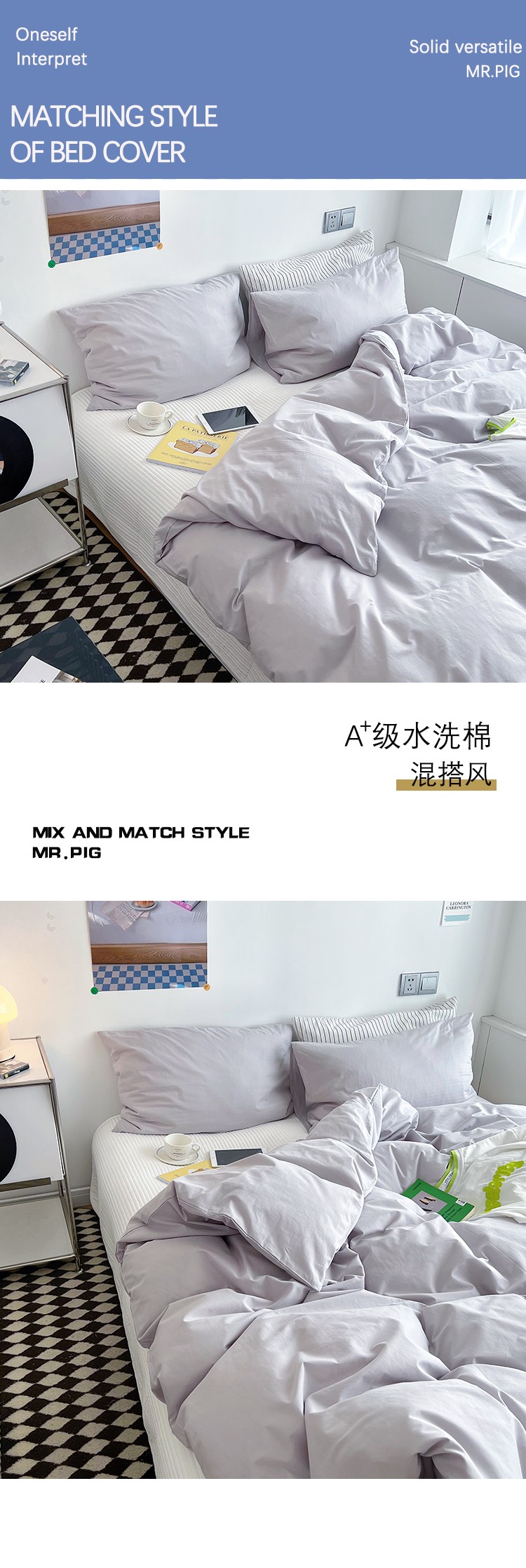 (总)Mr.pig猪先生水洗棉 2026新款简约全棉四件套系列(展示价格为控价,实际价格请联系客服),水墨气质灰,简禾电光蓝,简禾珀尔粉,简禾清水绿,梦想月季烟紫,梦想月季优雅粉,水墨烟灰