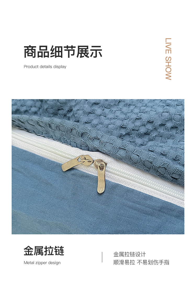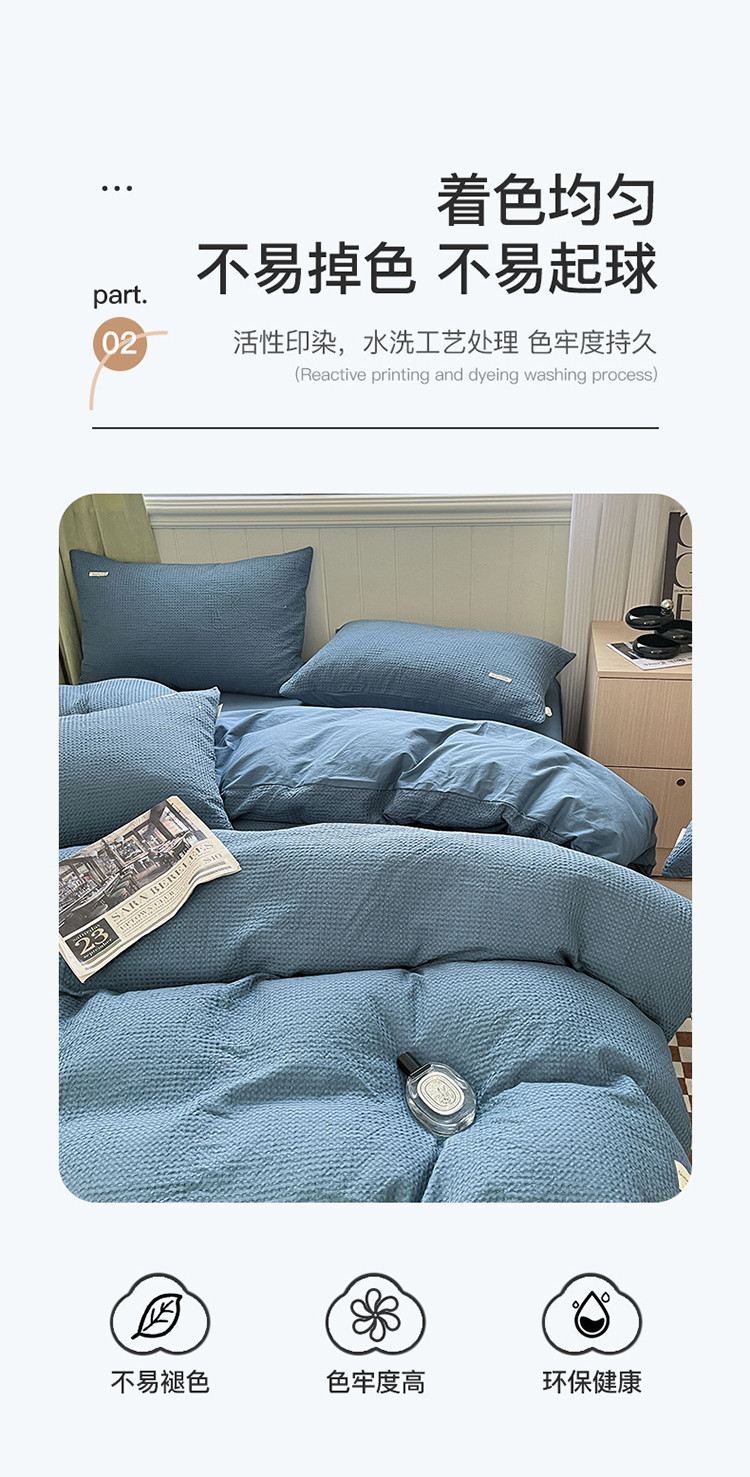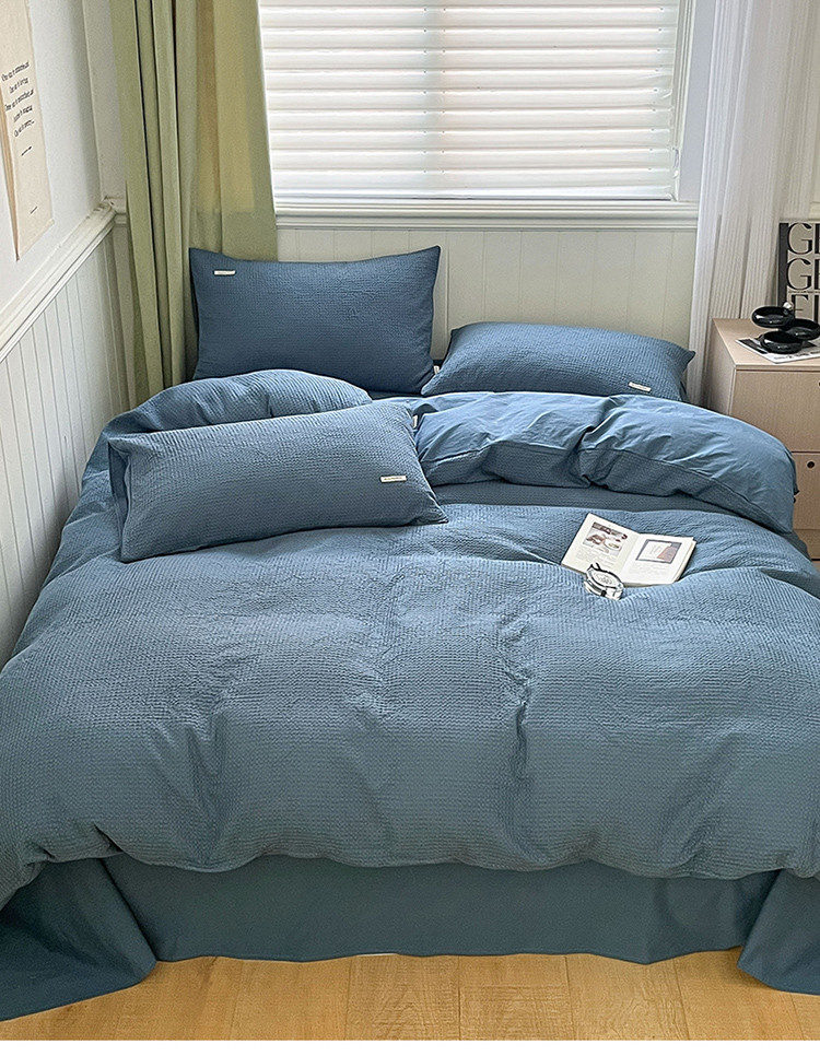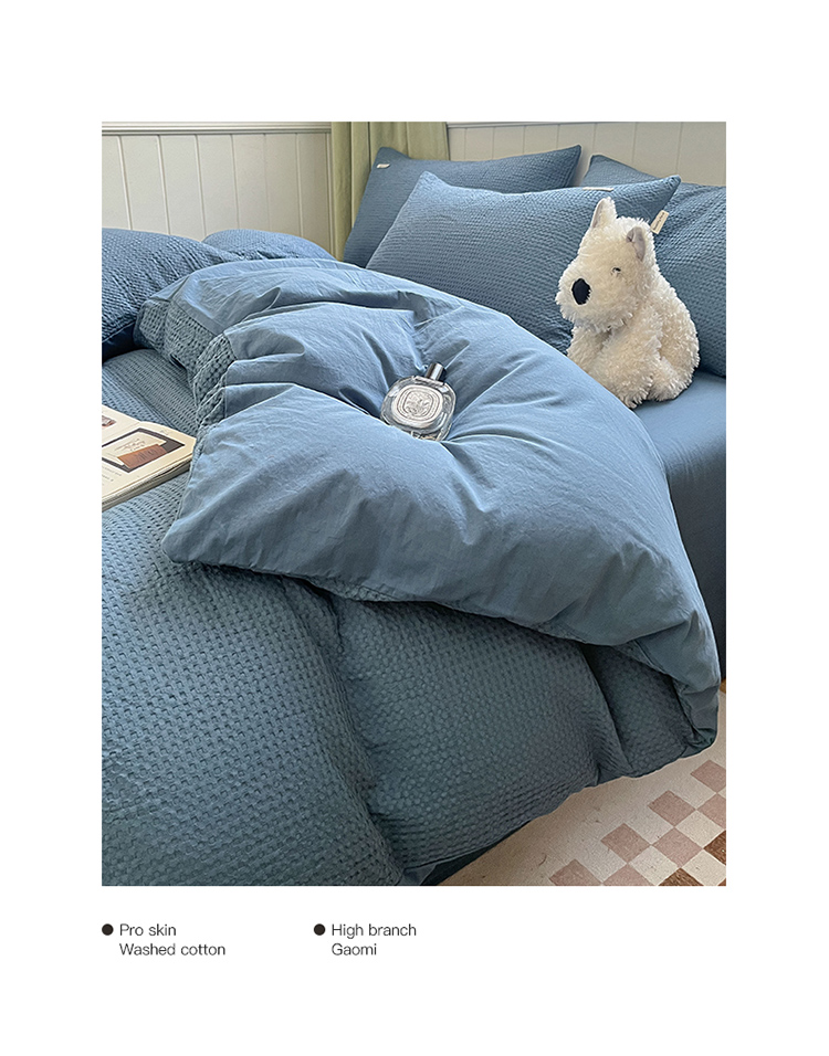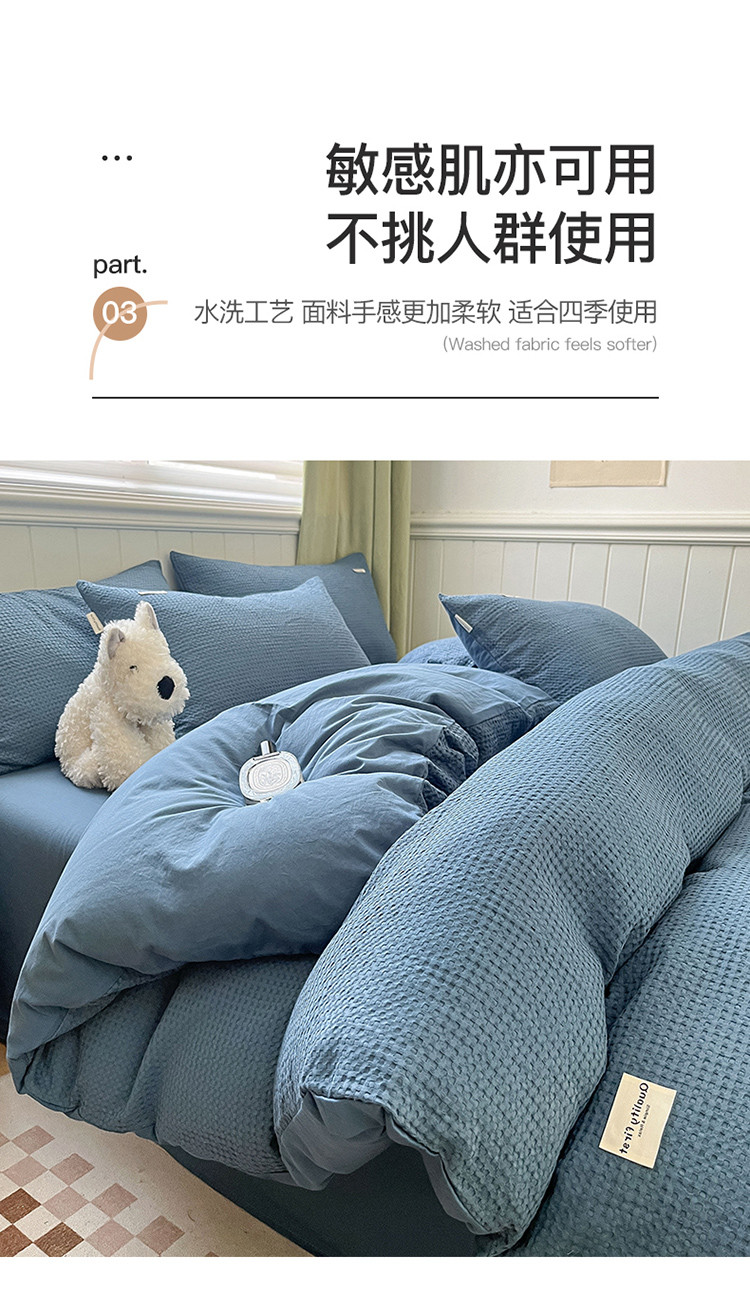 当前位置: 91家纺网 > 商品网购 > 床品套件 > 四件套 > 水洗棉四件套 > 丽美人 2023新款华夫格亲肤水洗棉四件套 华夫格-雾蓝