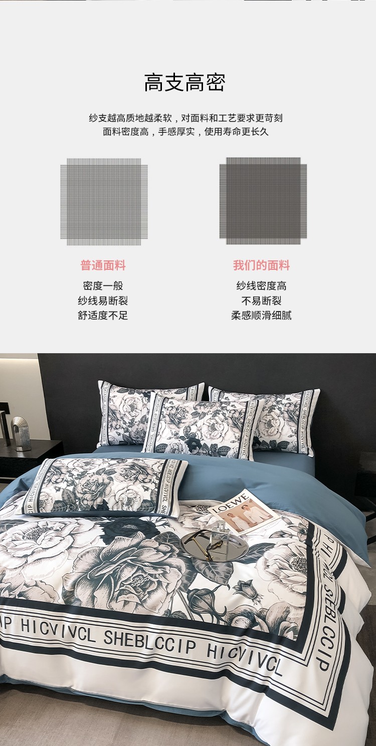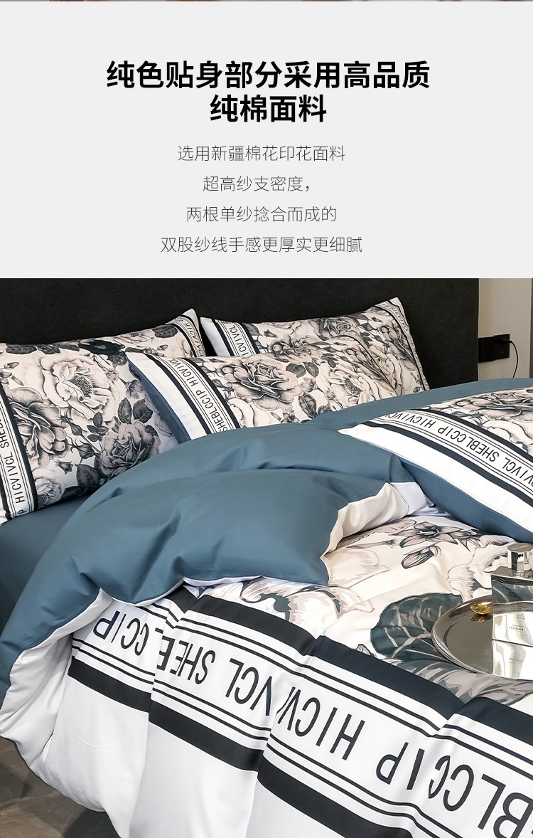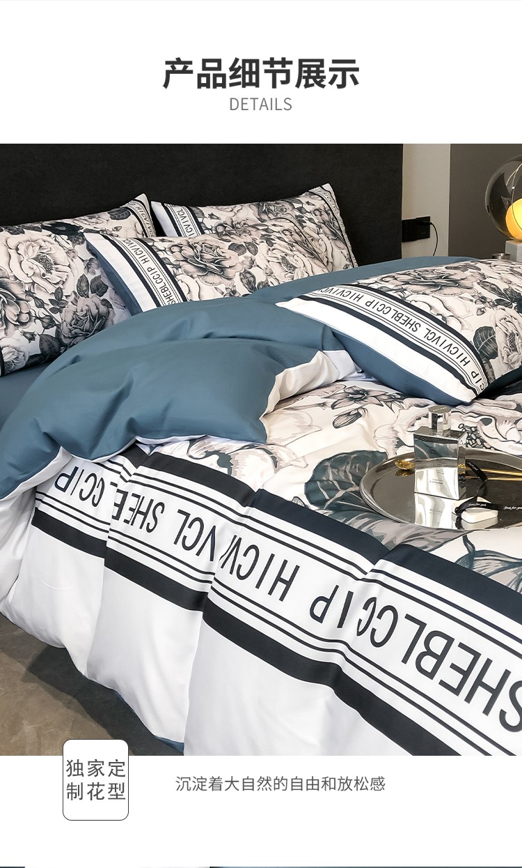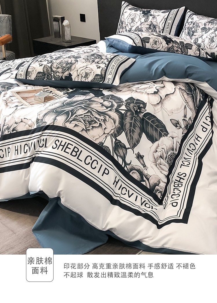 当前位置: 91家纺网 > 商品网购 > 床品套件 > 四件套 > 全棉普通四件套 > 色鬼布艺 2023新款13376纯棉潮牌床单床笠款四件套 轻奢大花