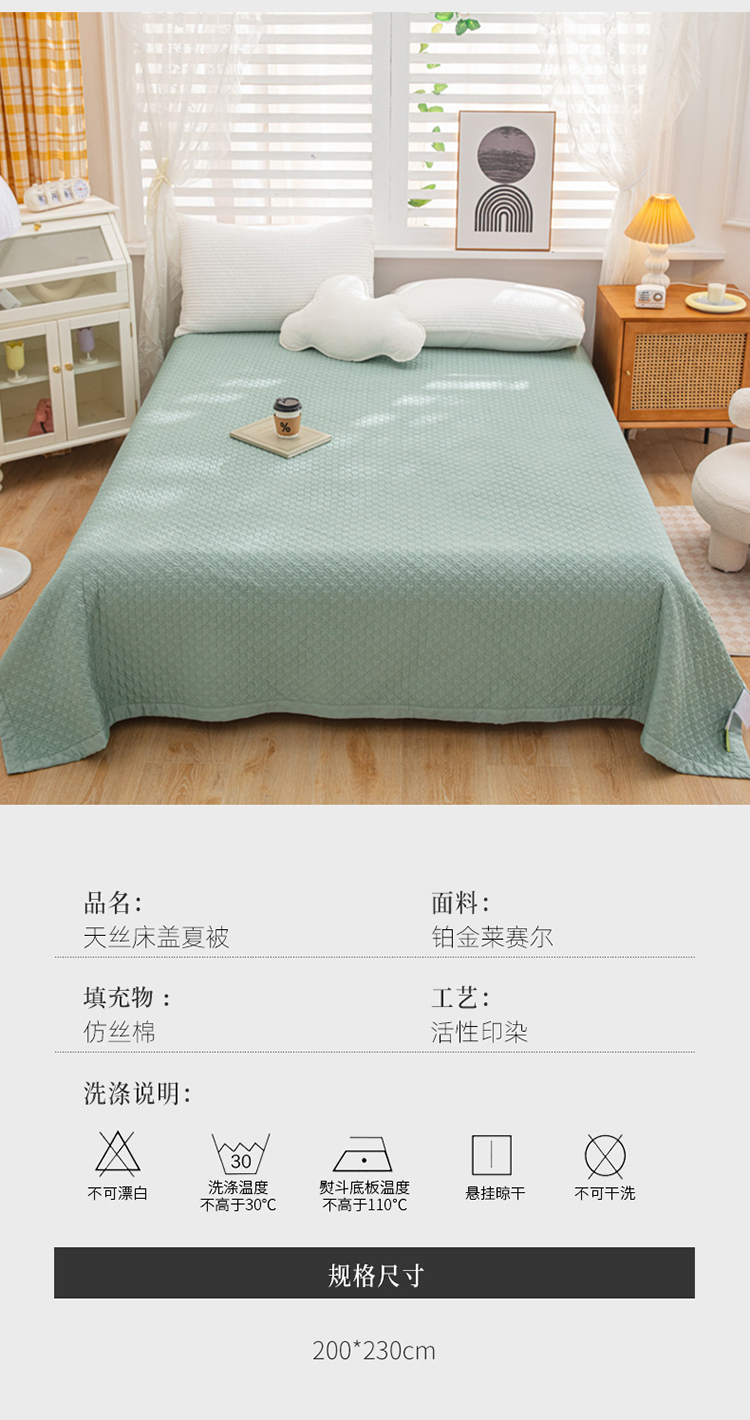 商品名称:卡奥 2023新款天丝床盖夏被 莫兰迪绿