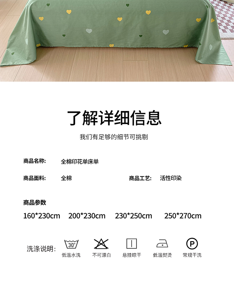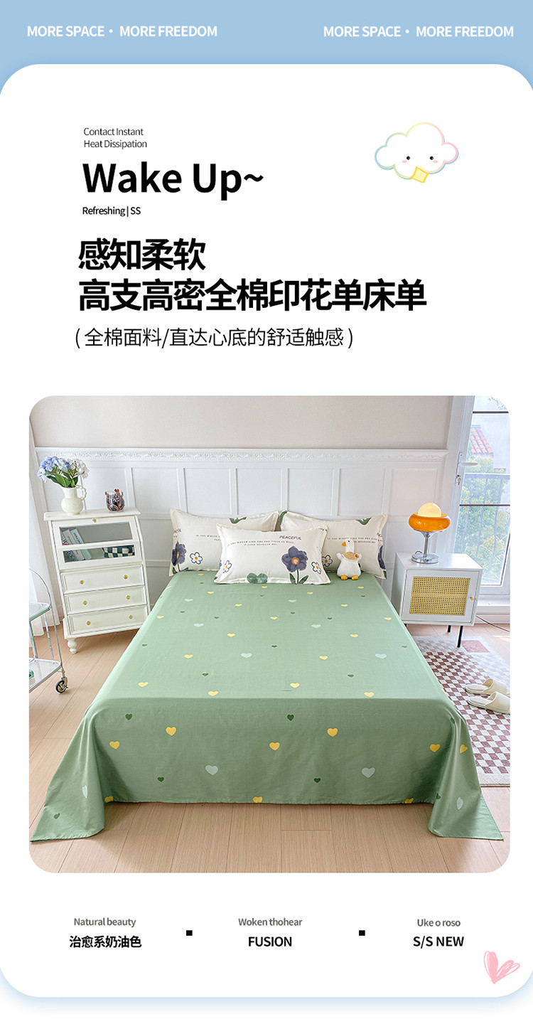 商品名称:帛织澜 2025新款全棉喷气12868系列纯棉床单 绿蔓