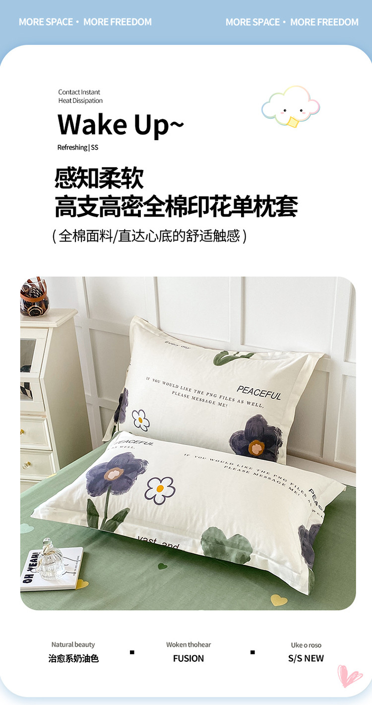 商品名称:帛织澜 2025新款全棉喷气12868系列纯棉枕套 绿蔓