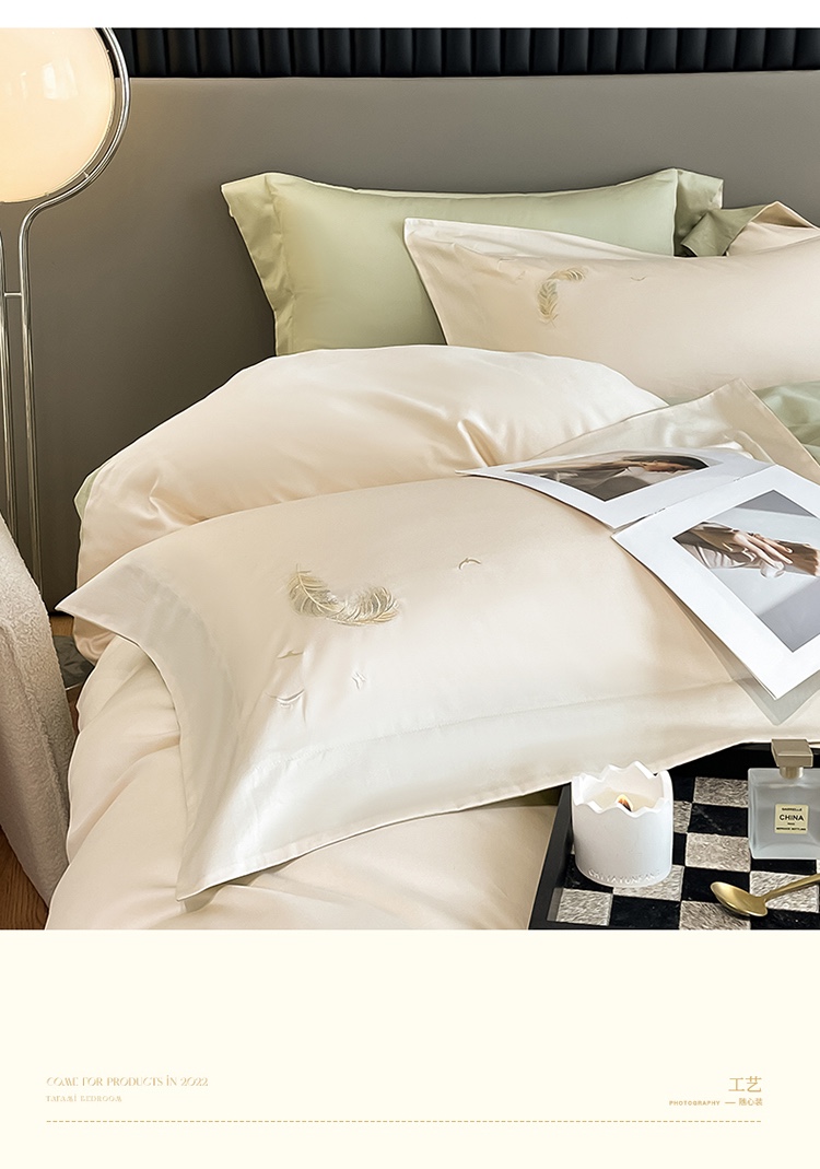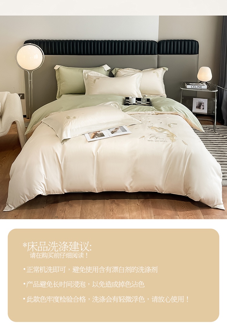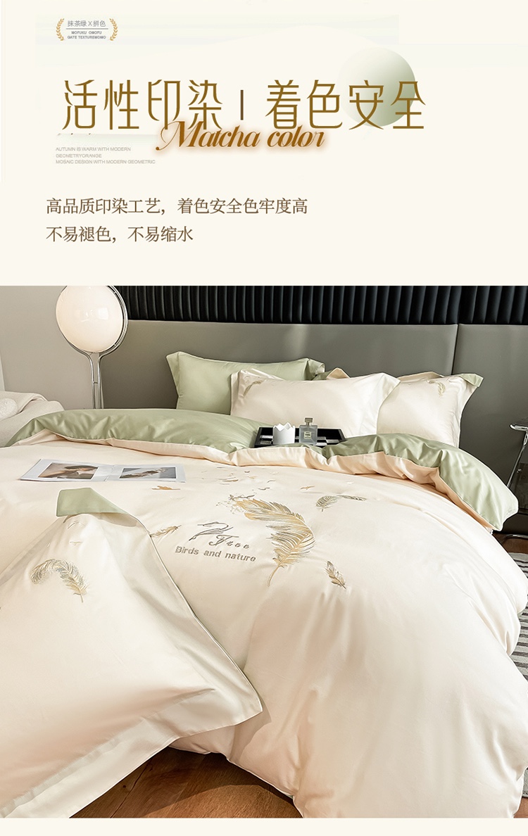 商品名称:蓝米卡夫 2024全棉高级感长绒棉刺绣兰羽系列-单被套 兰羽-芝士抹茶