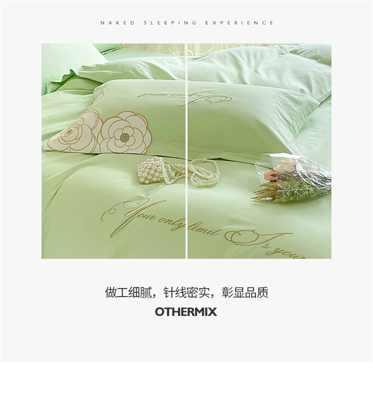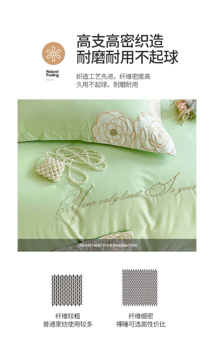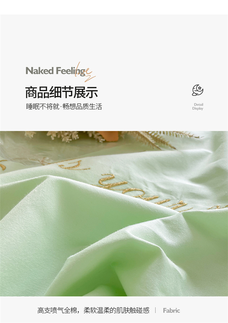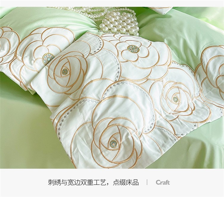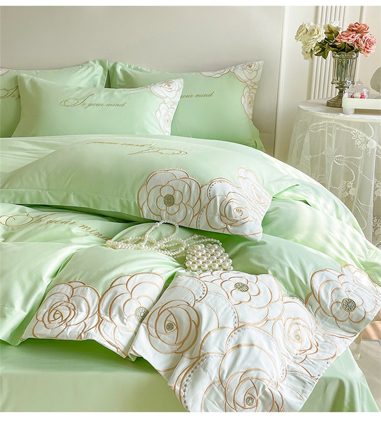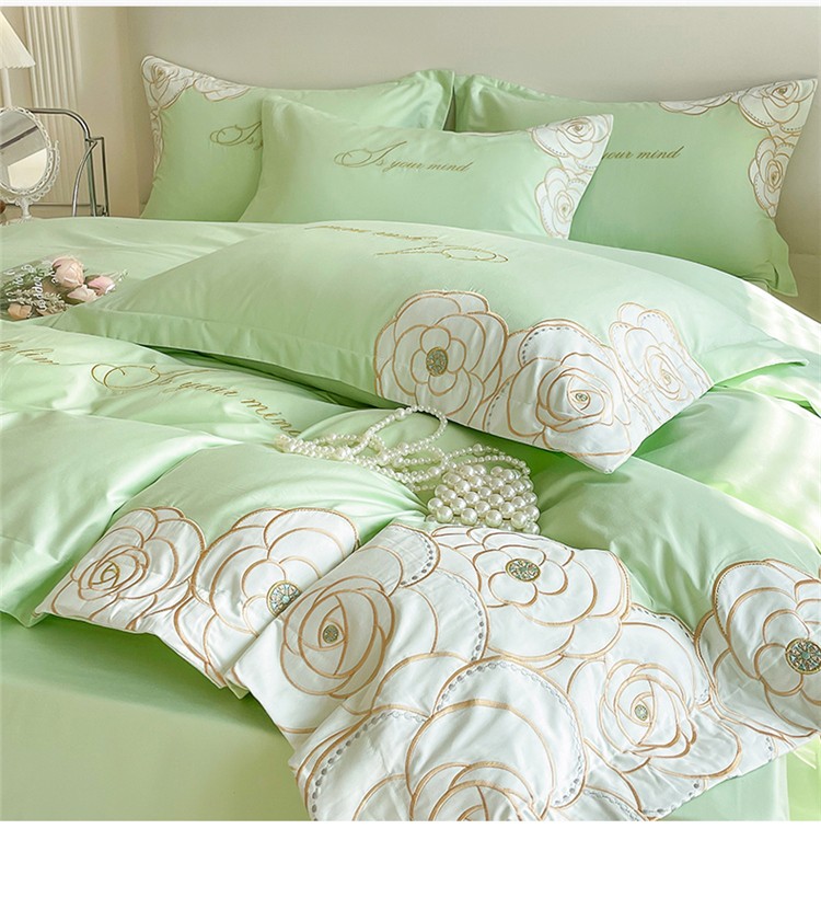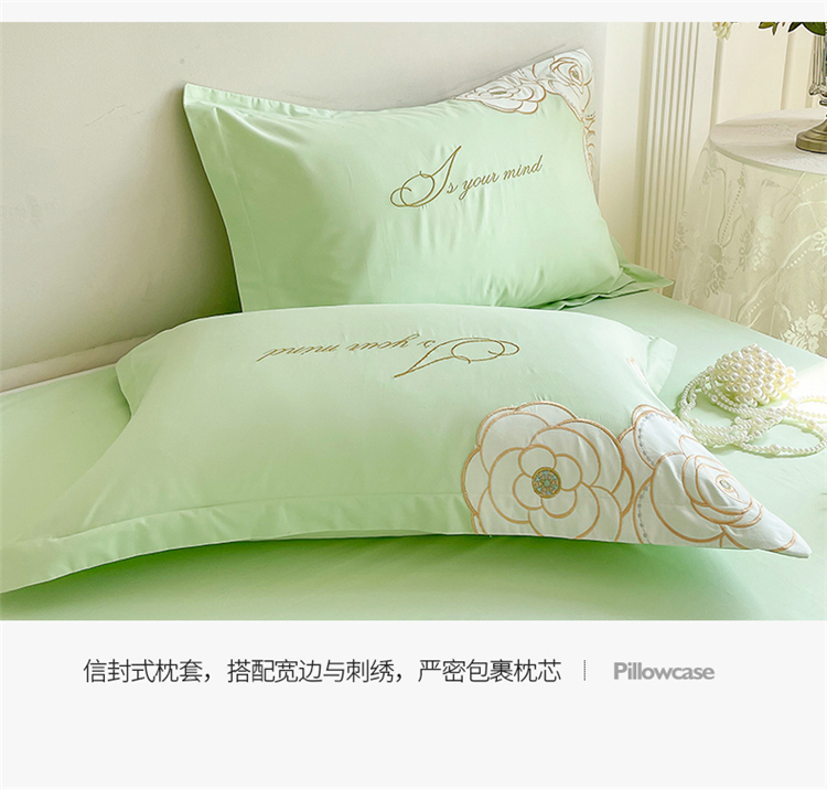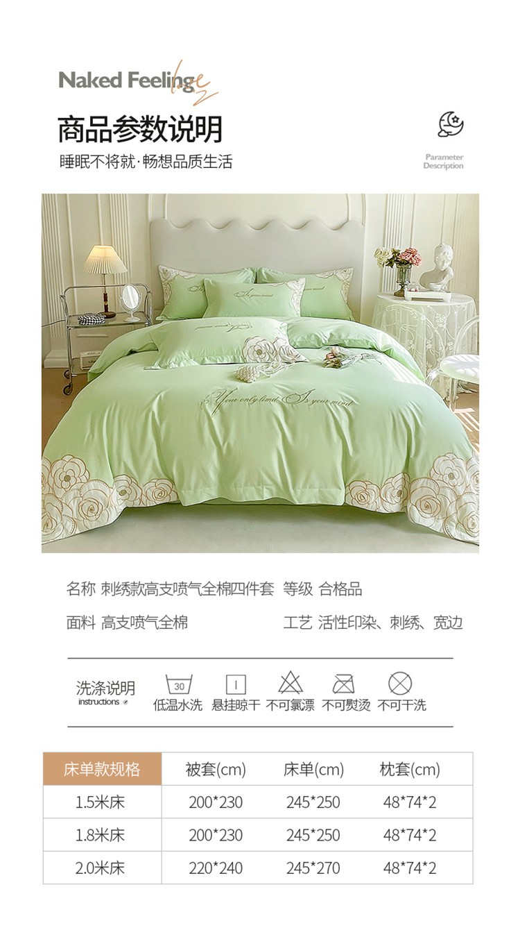 商品名称:懒猫2024新款高精密40支全棉喷气绣花四件套 -丽莎系列 丽莎-清新绿