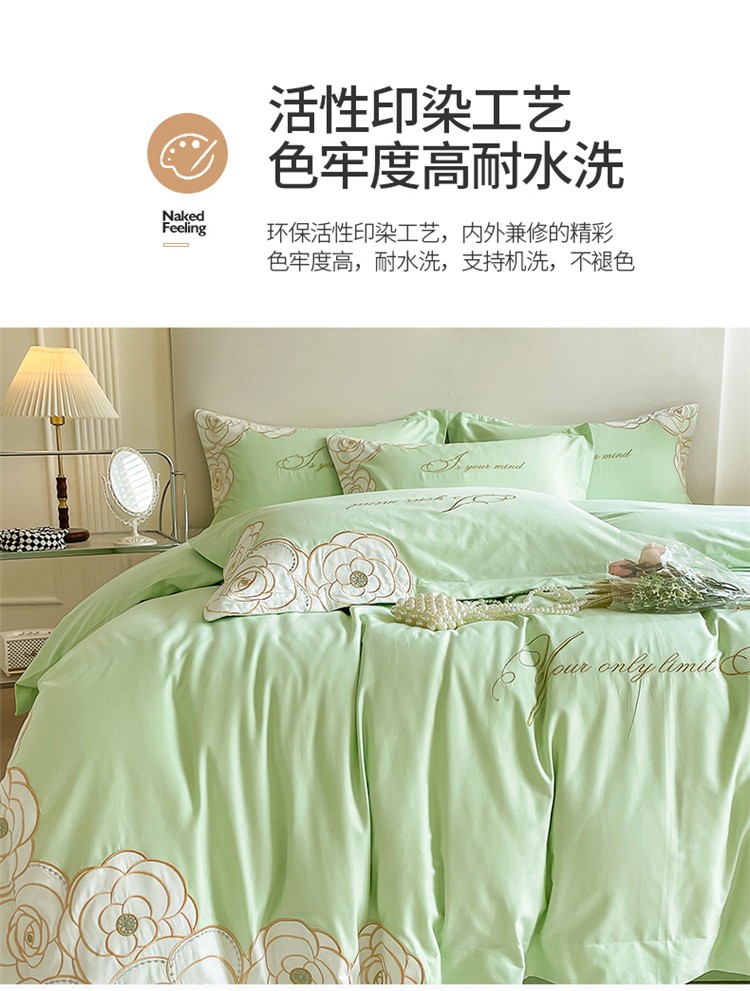 懒猫2024新款高精密40支全棉喷气绣花四件套 -丽莎系列 丽莎-清新绿