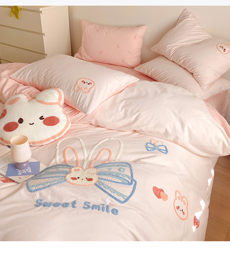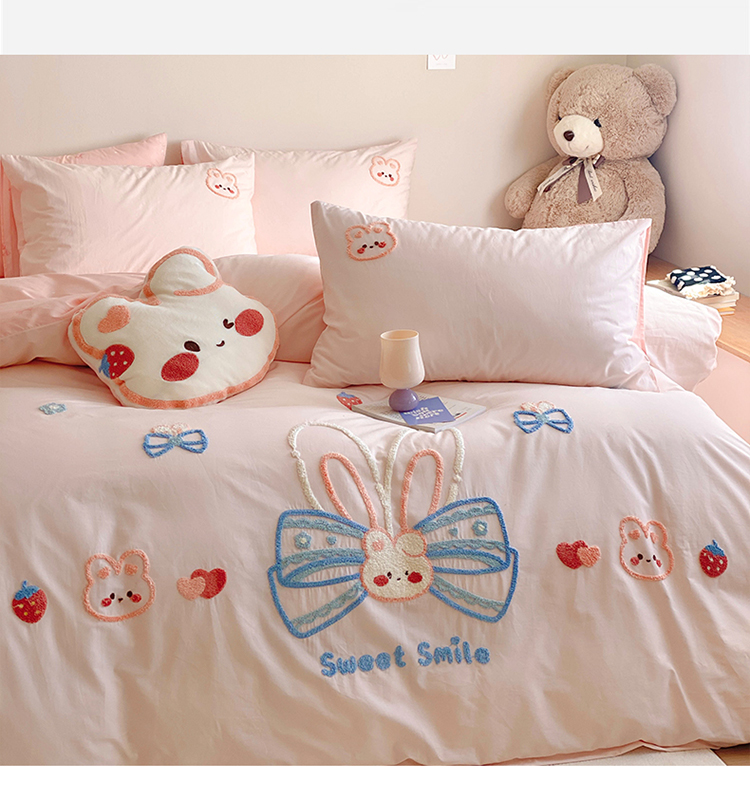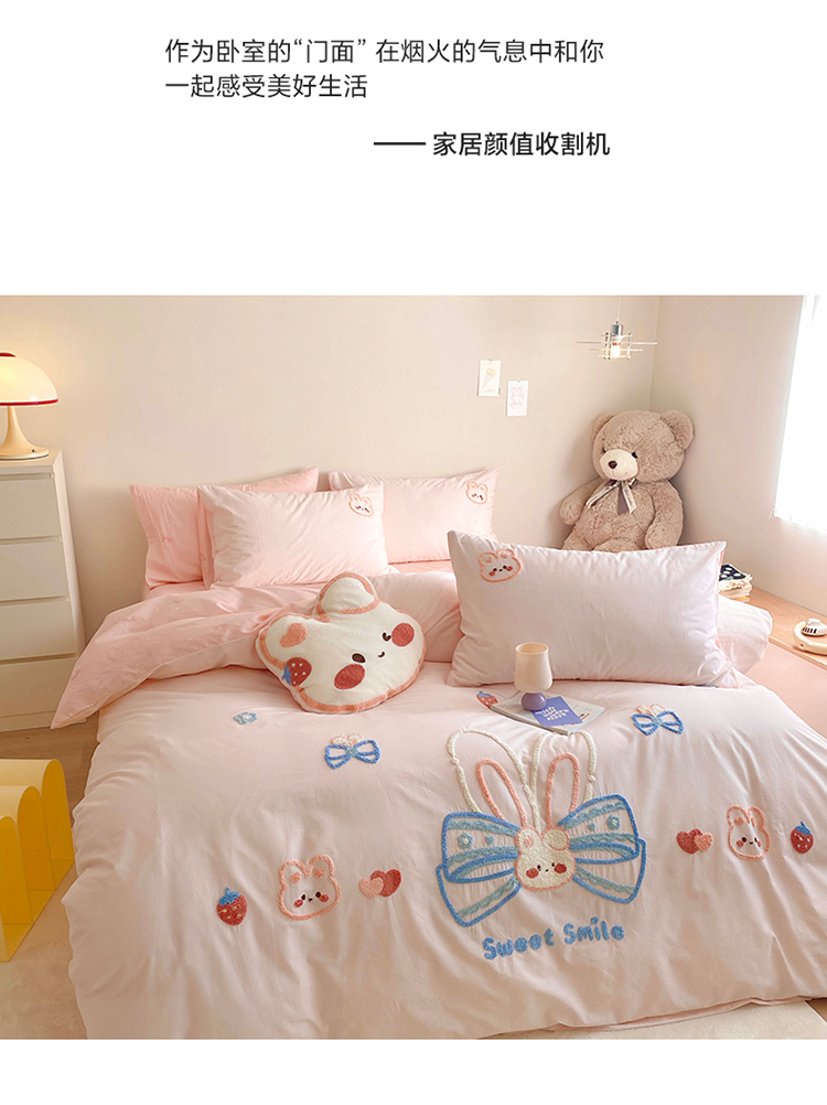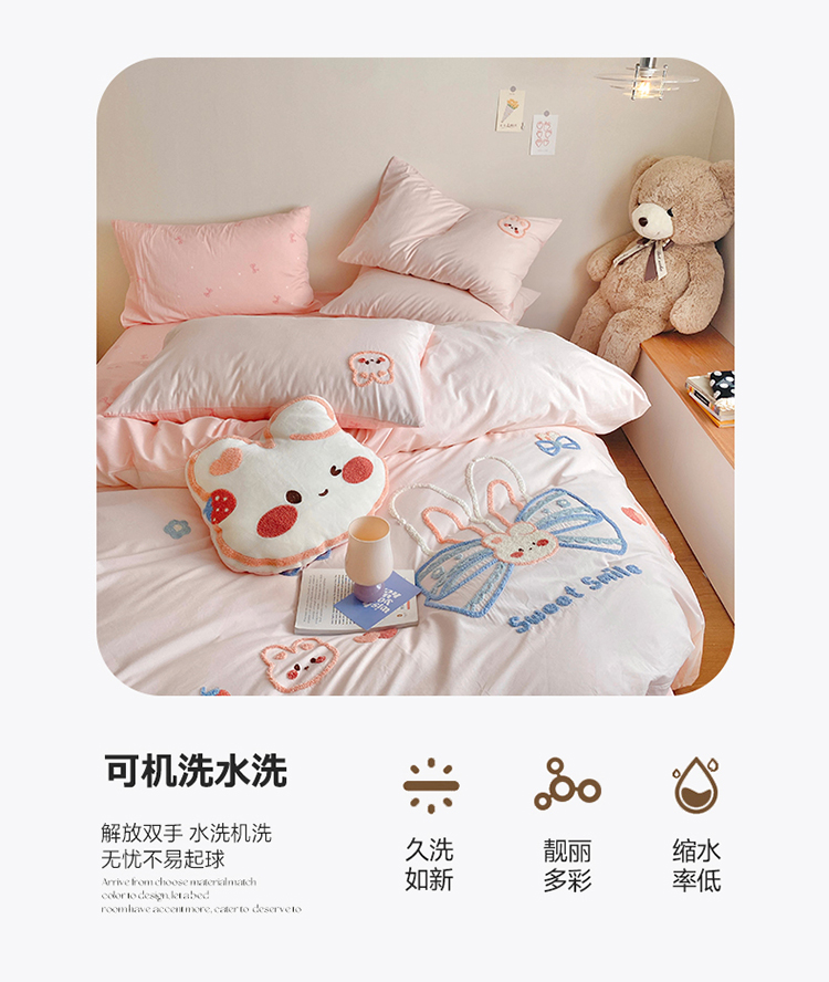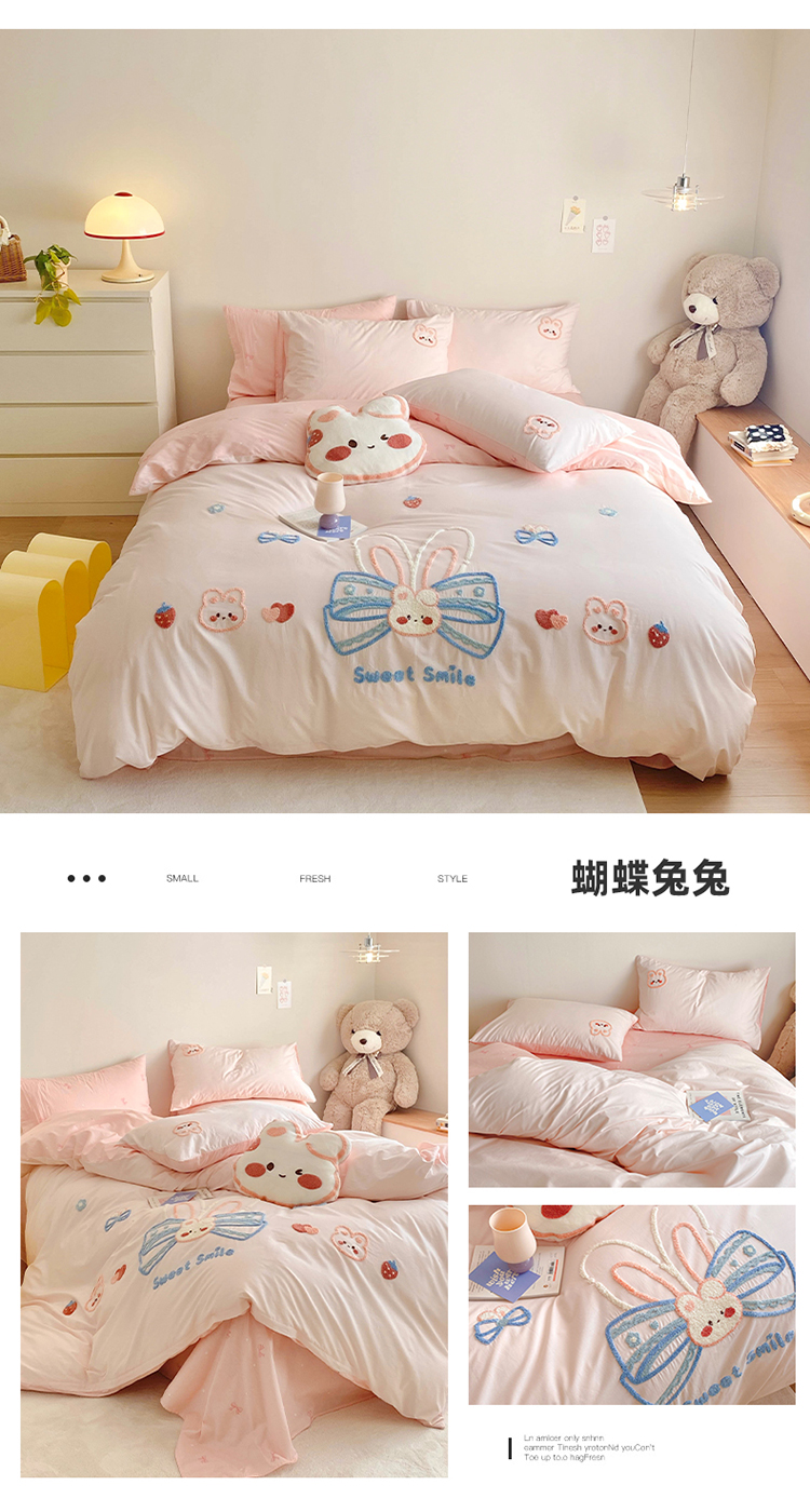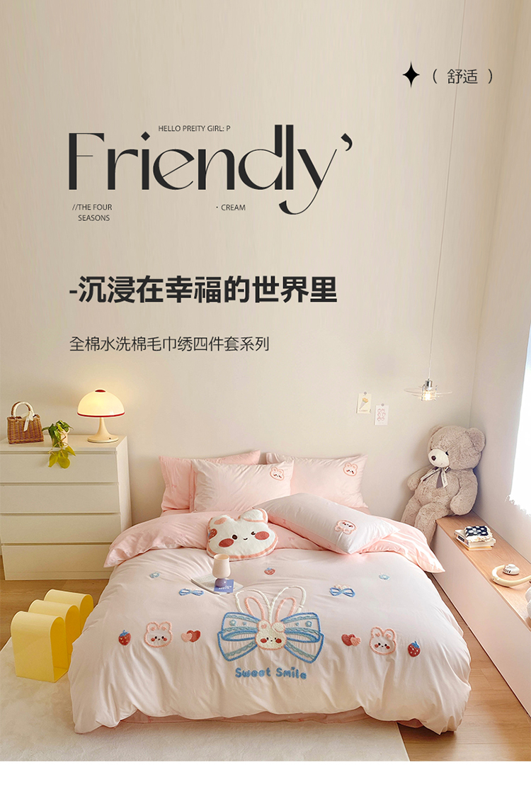 商品名称:眠屿2023新款全棉水洗棉毛巾绣四件套 蝴蝶兔兔
