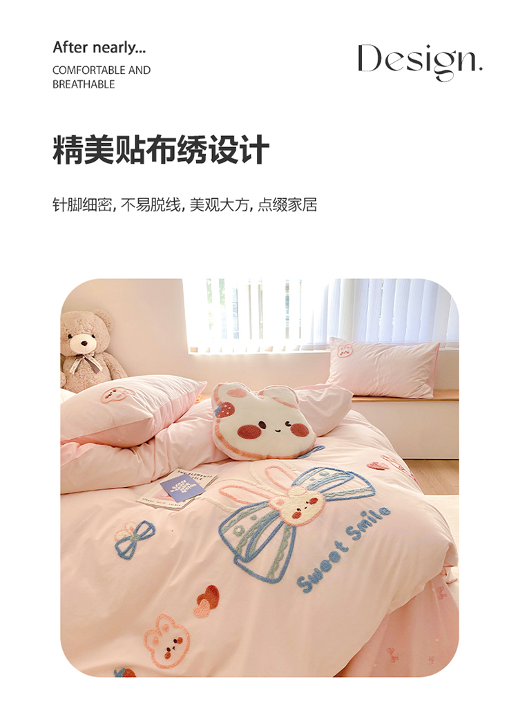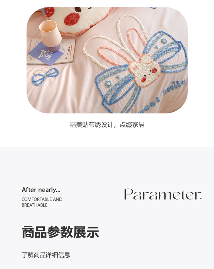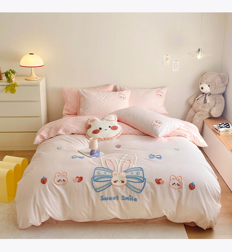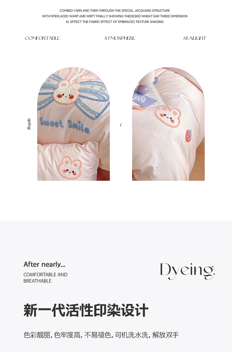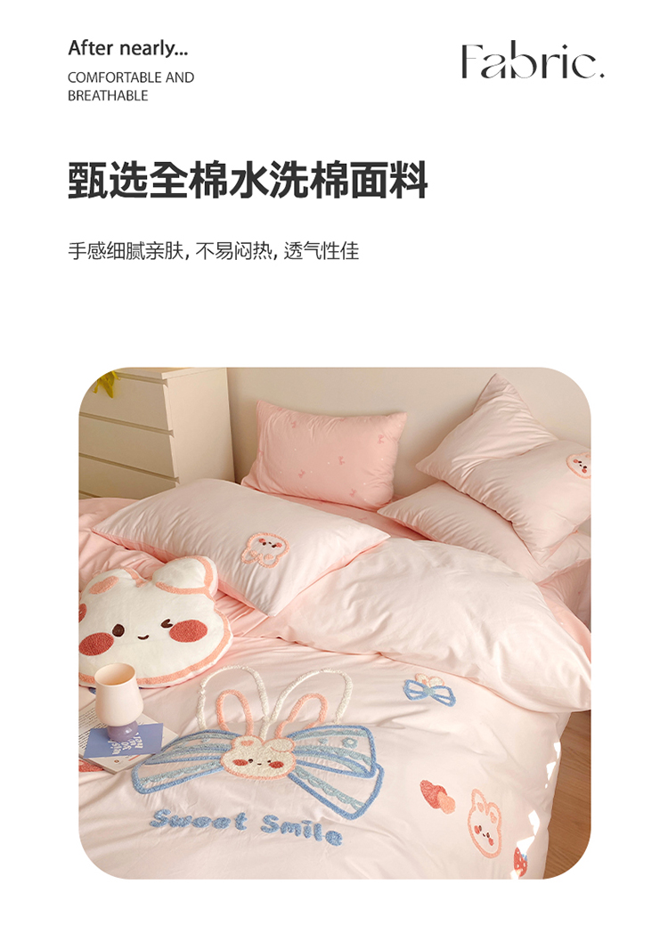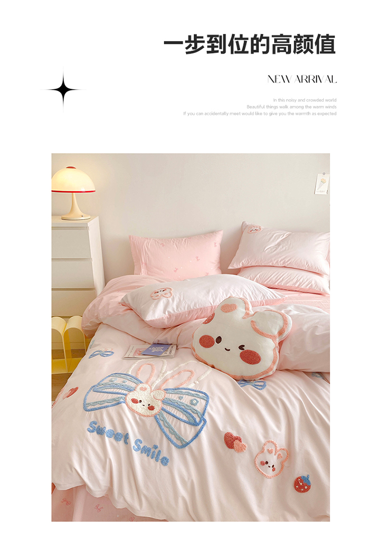 商品名称:眠屿2023新款全棉水洗棉毛巾绣四件套 蝴蝶兔兔