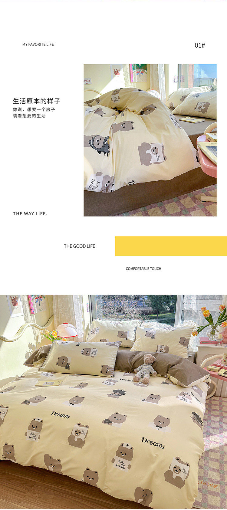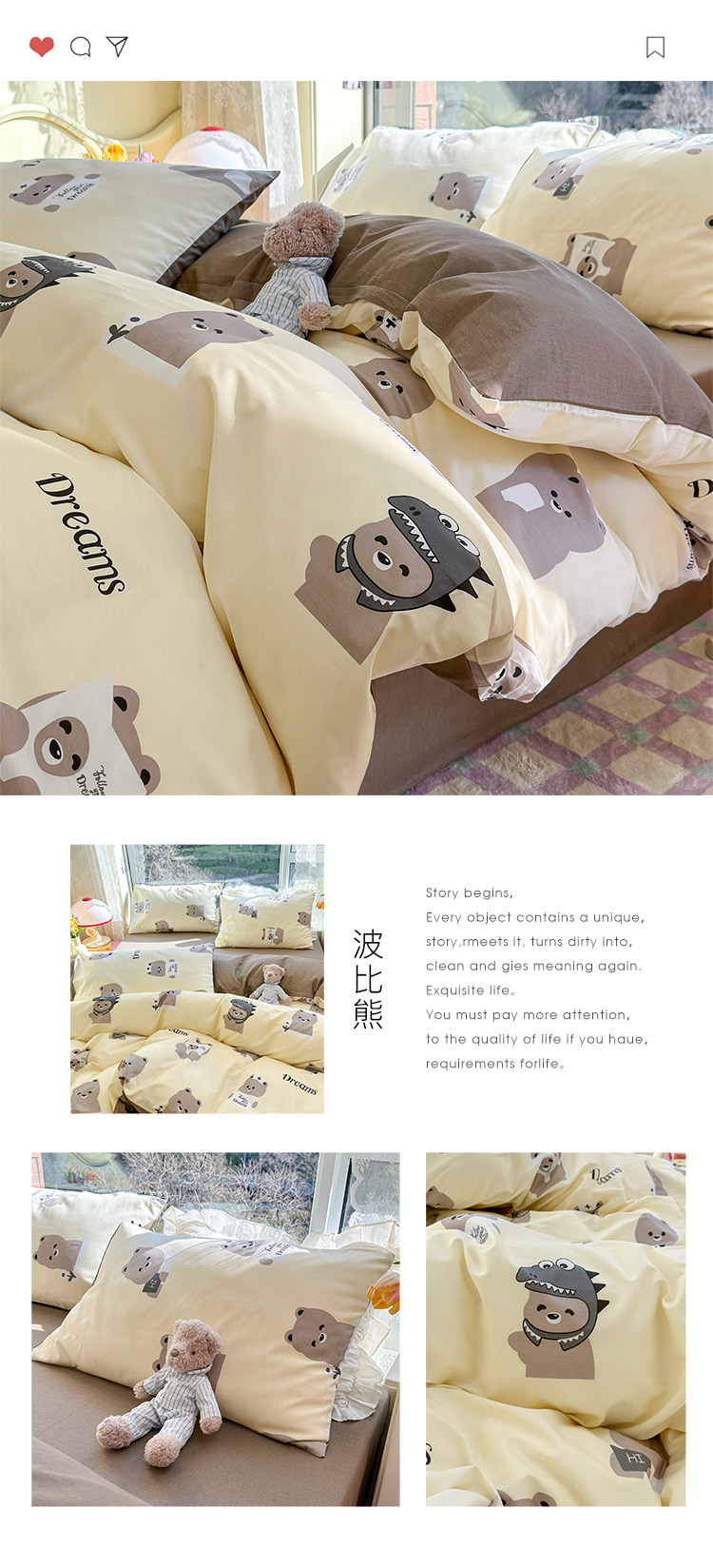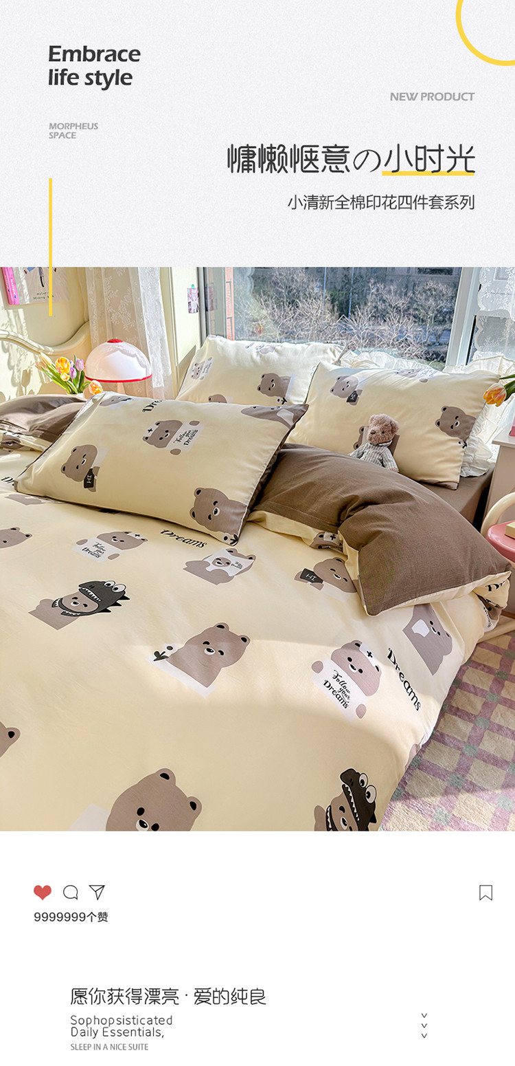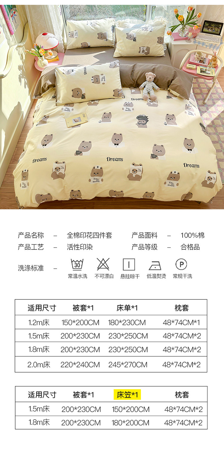 商品名称:瑞莱 2023春夏新款全棉印花四件套-卡通系列 (第二批)波比熊