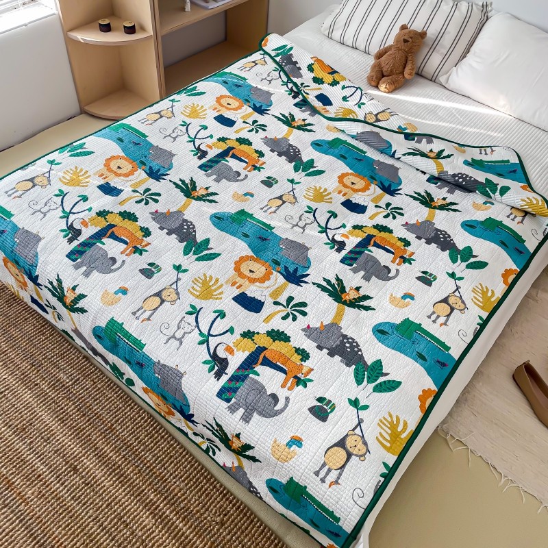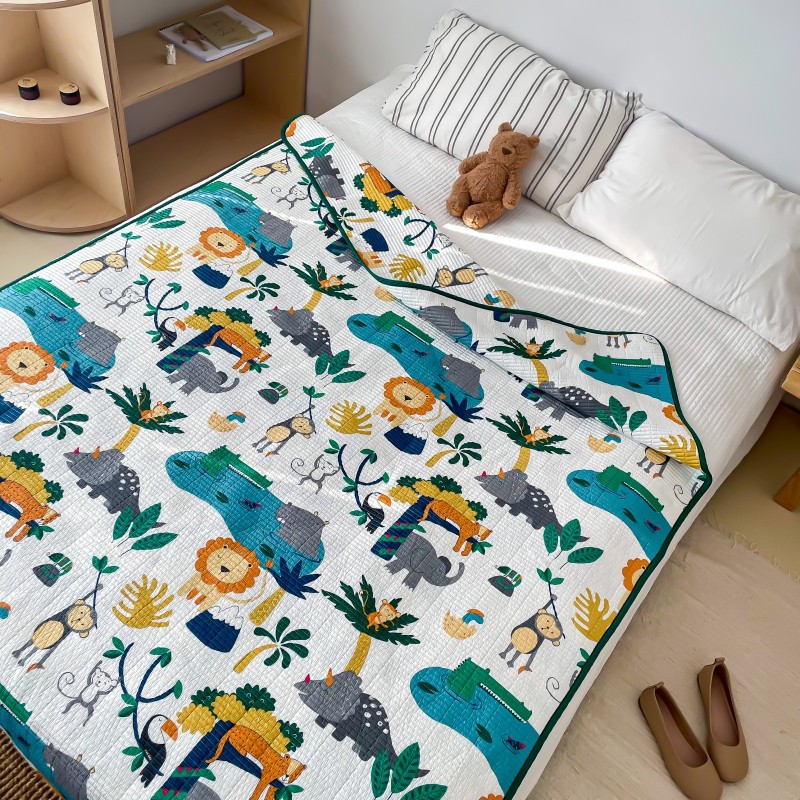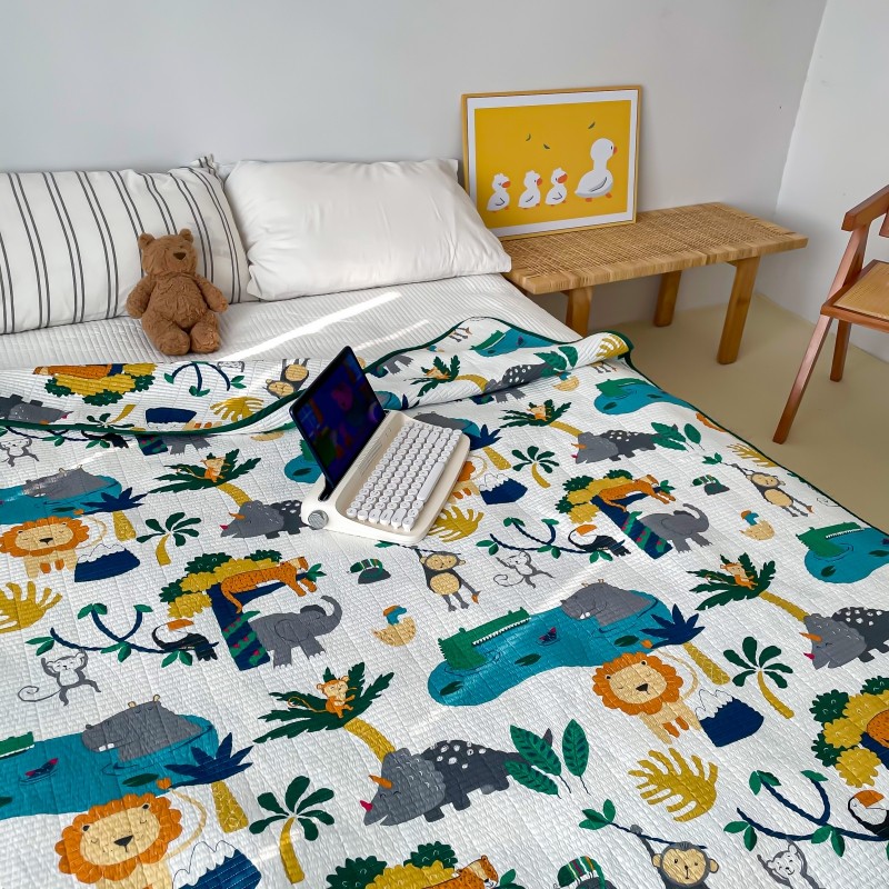汇庭 2023新款卡通印花单品床盖系列 快乐森林