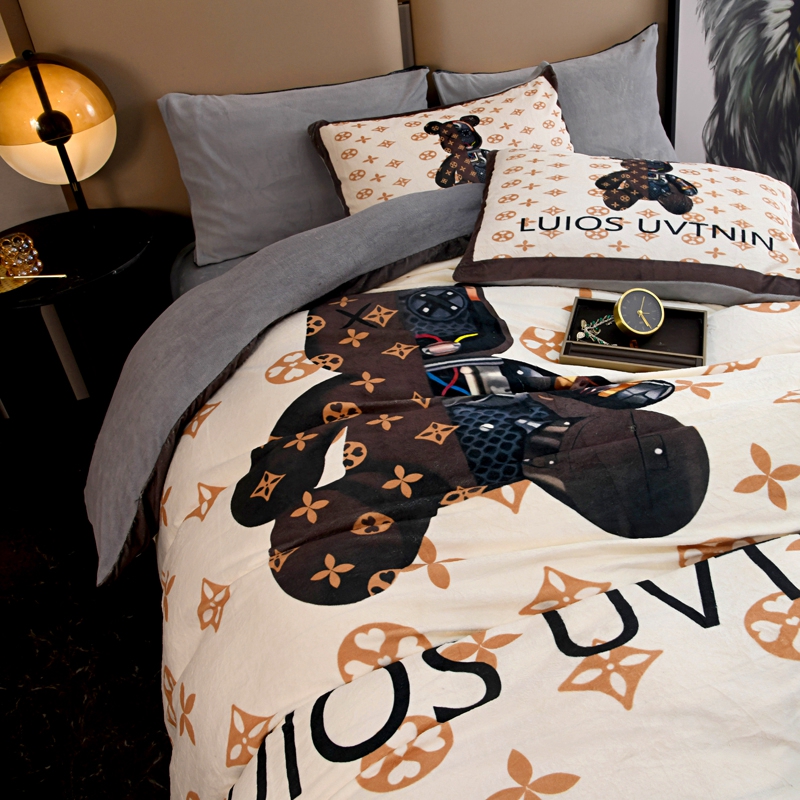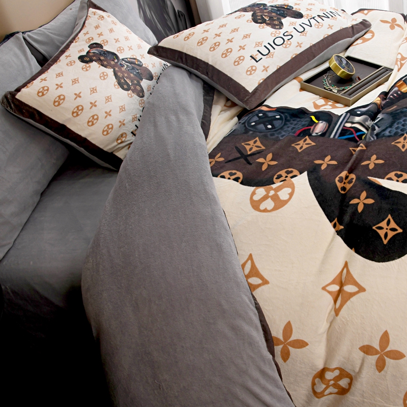 商品名称:爵仕 2023新款暴力熊系列牛奶绒四件套 机械咖