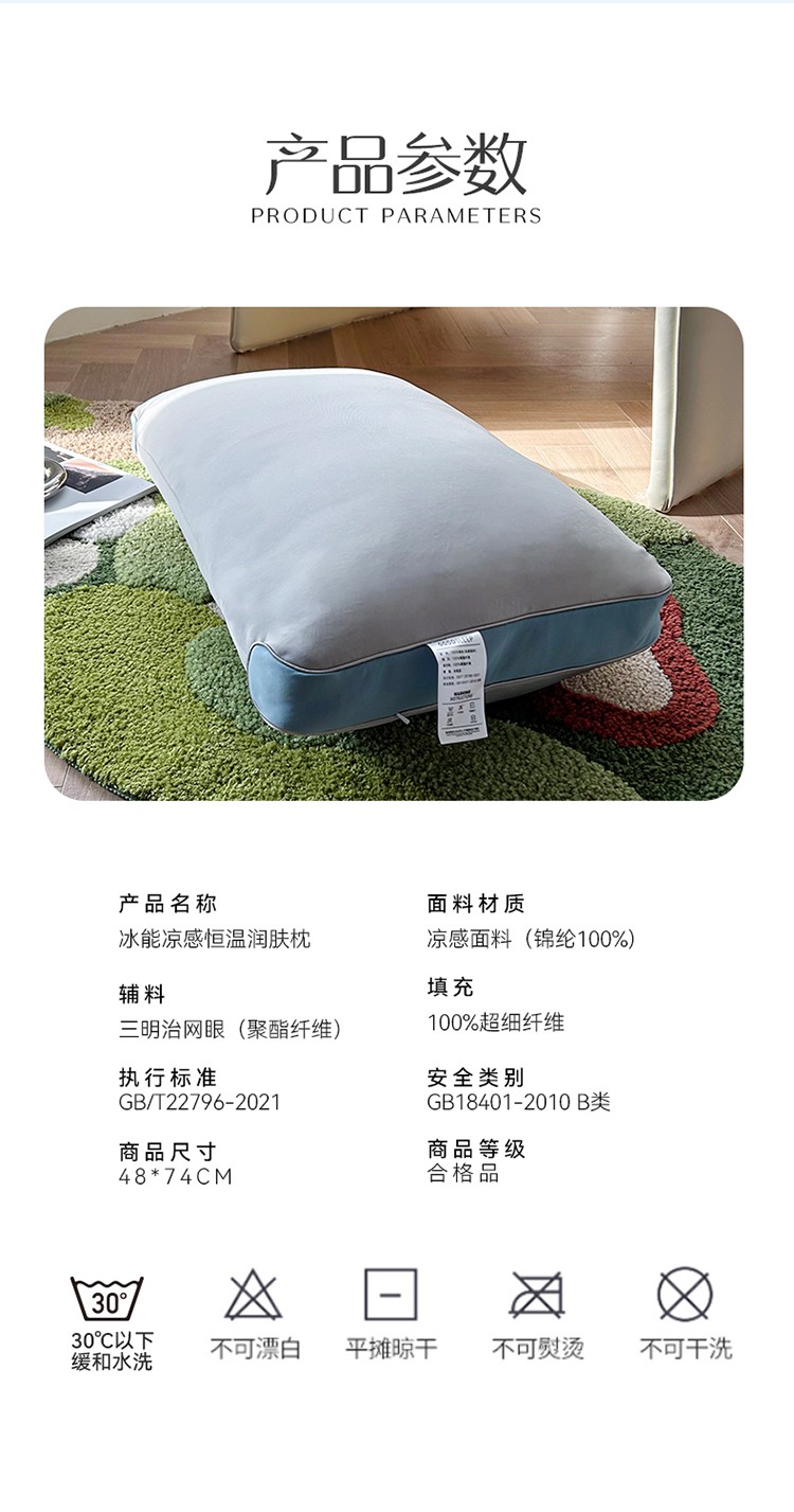 商品名称:星芯合 2024新款冰能凉感恒温润肤枕 月光灰