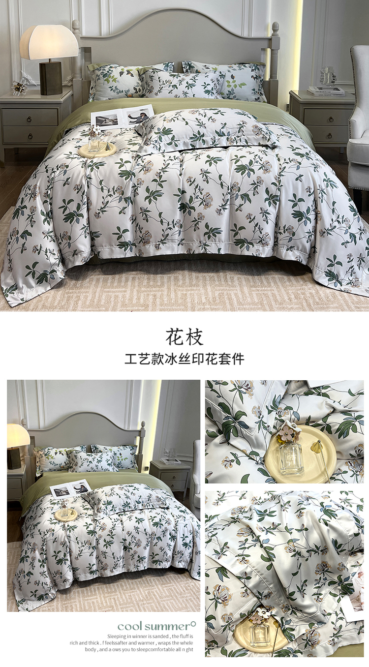 当前位置: 91家纺网 > 商品网购 > 床品套件 > 四件套 > 水洗真丝四件套 > 优悦2023新款印花美式冰丝水洗真丝四件套 花枝