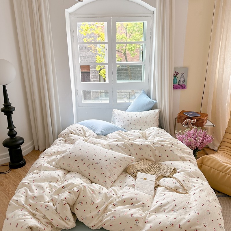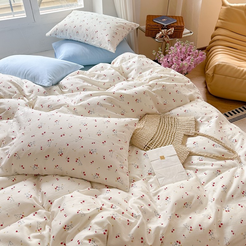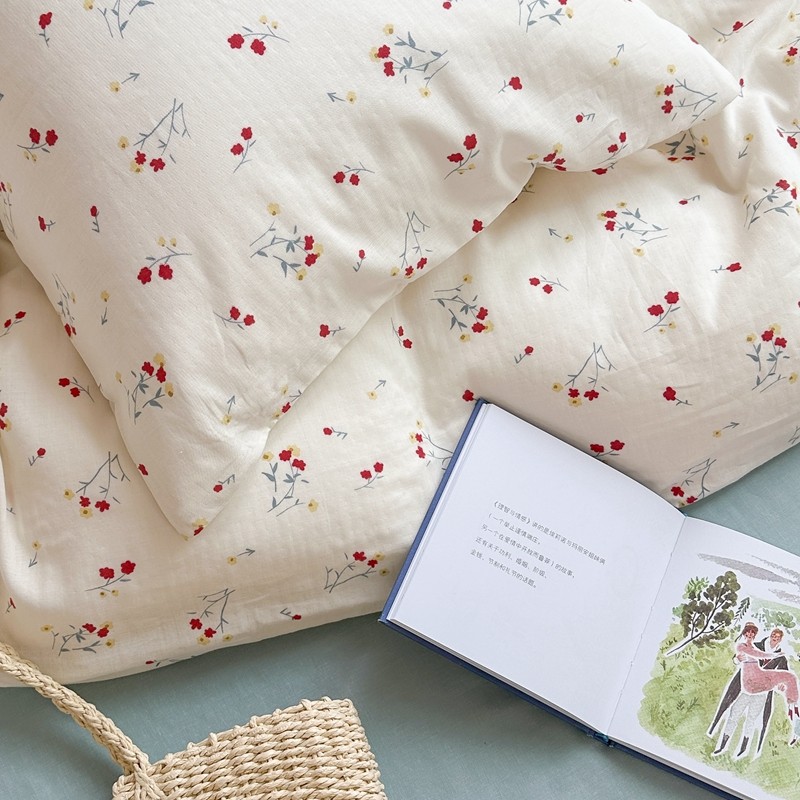 商品名称:时年 2023新款全棉母婴级有氧双层纱夏被四件套 花季