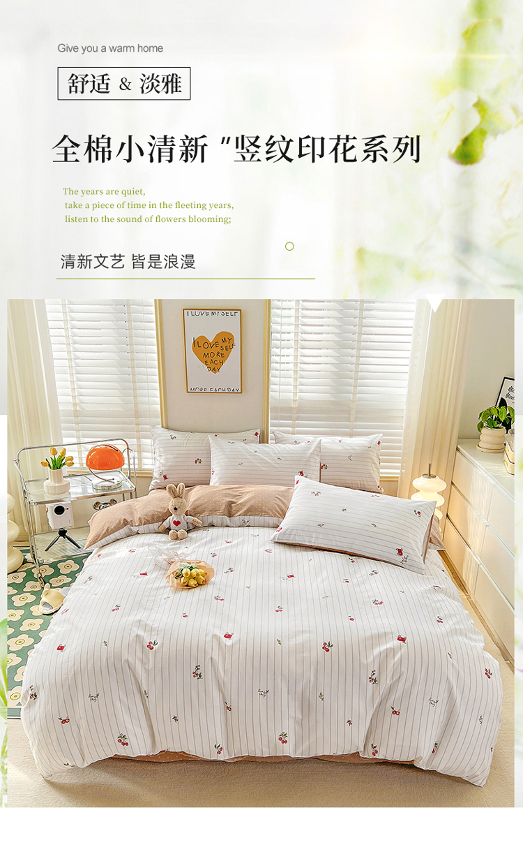 商品名称:捌月 2023新款13372全棉四件套竖纹印花系列 小甜心