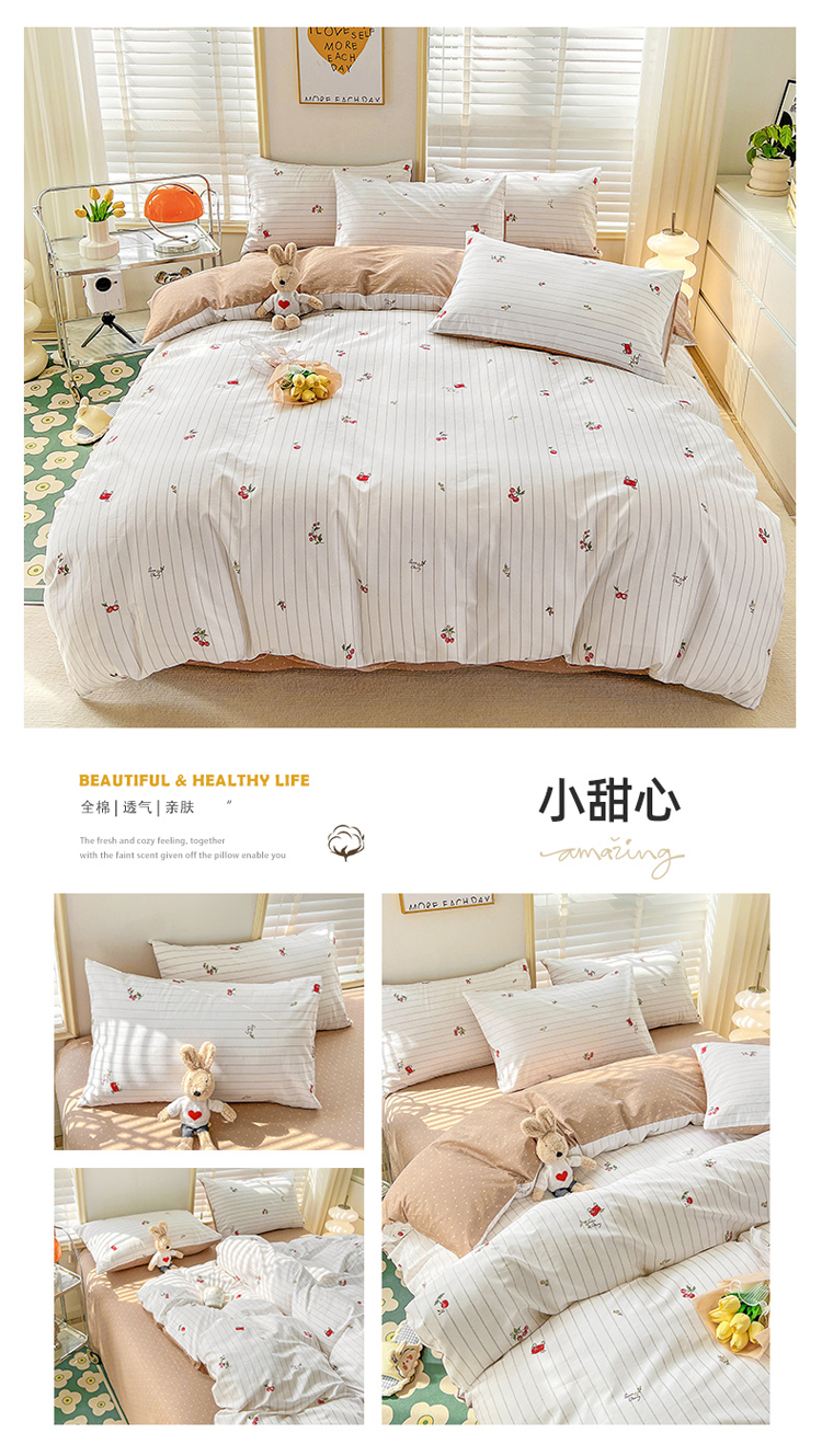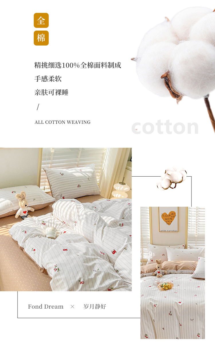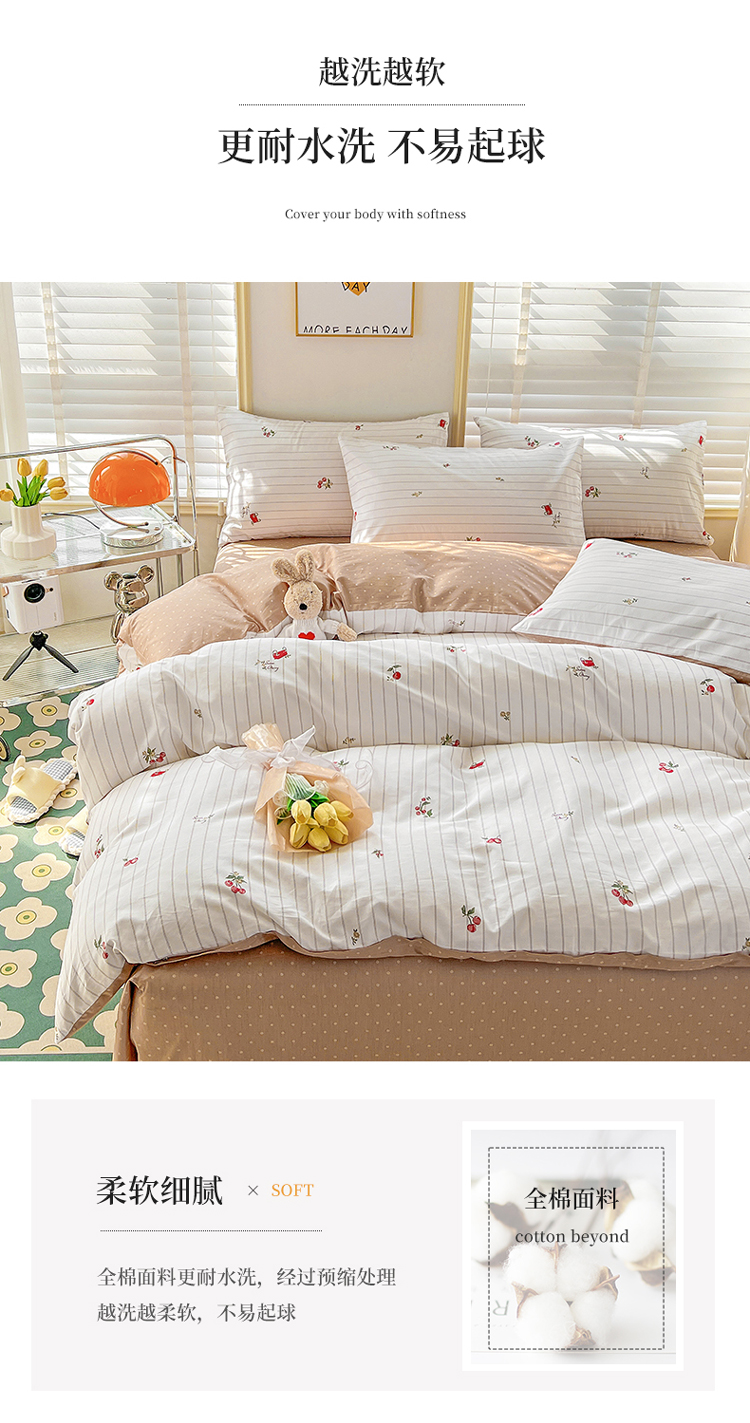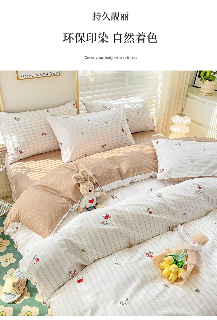 (总)捌月 2023新款13372全棉四件套竖纹印花系列,草莓园,兔小姐,小兰花,小甜心