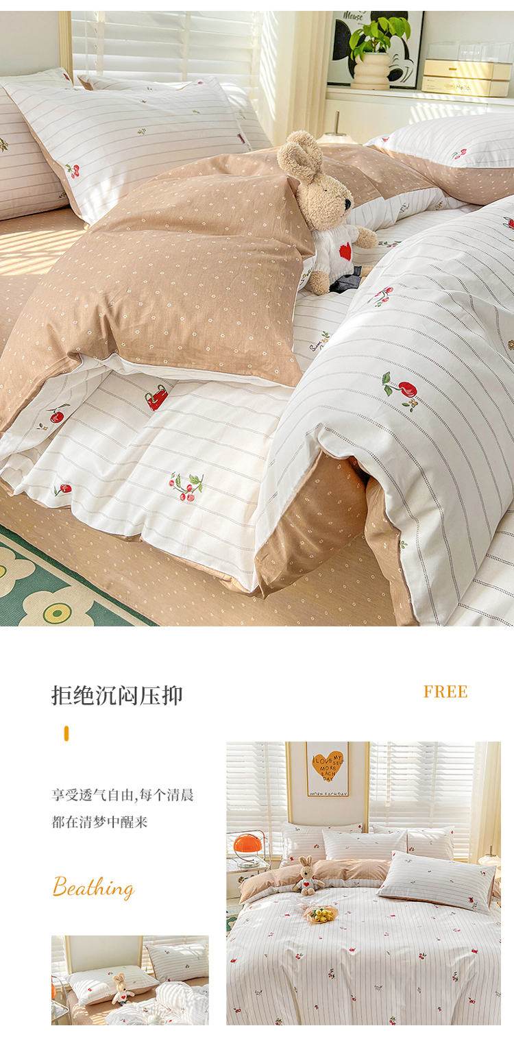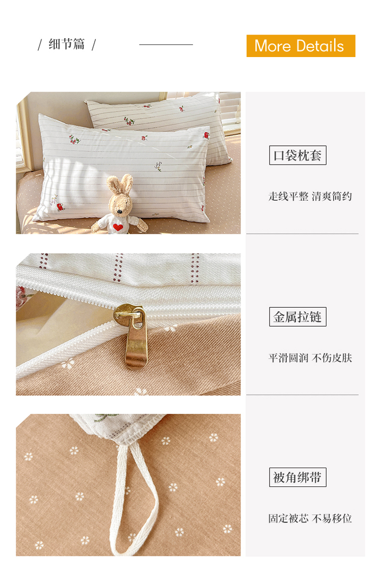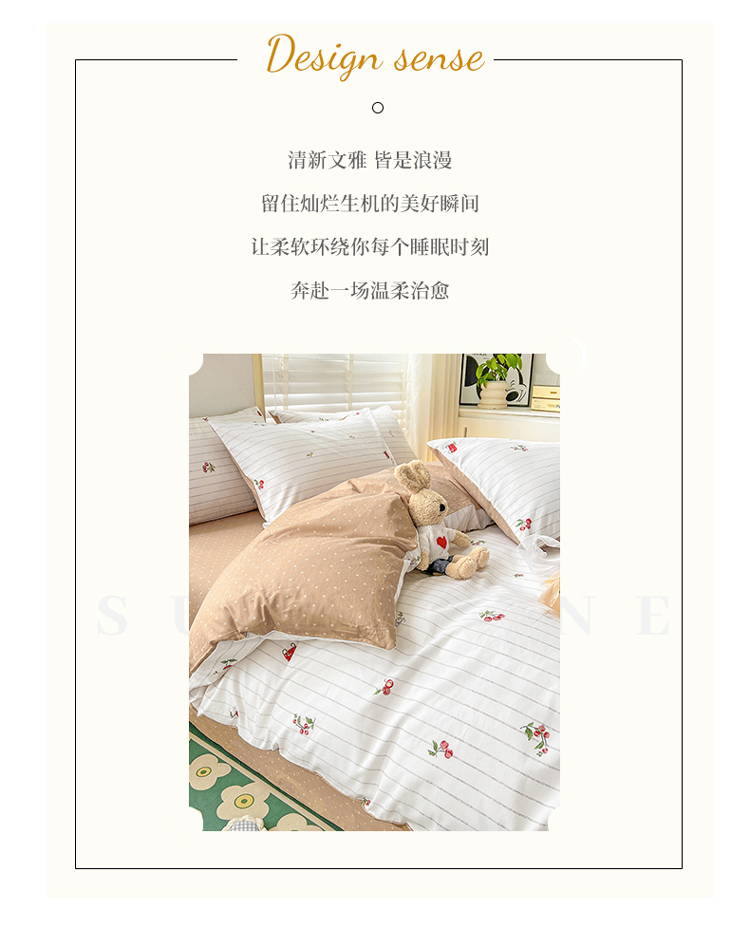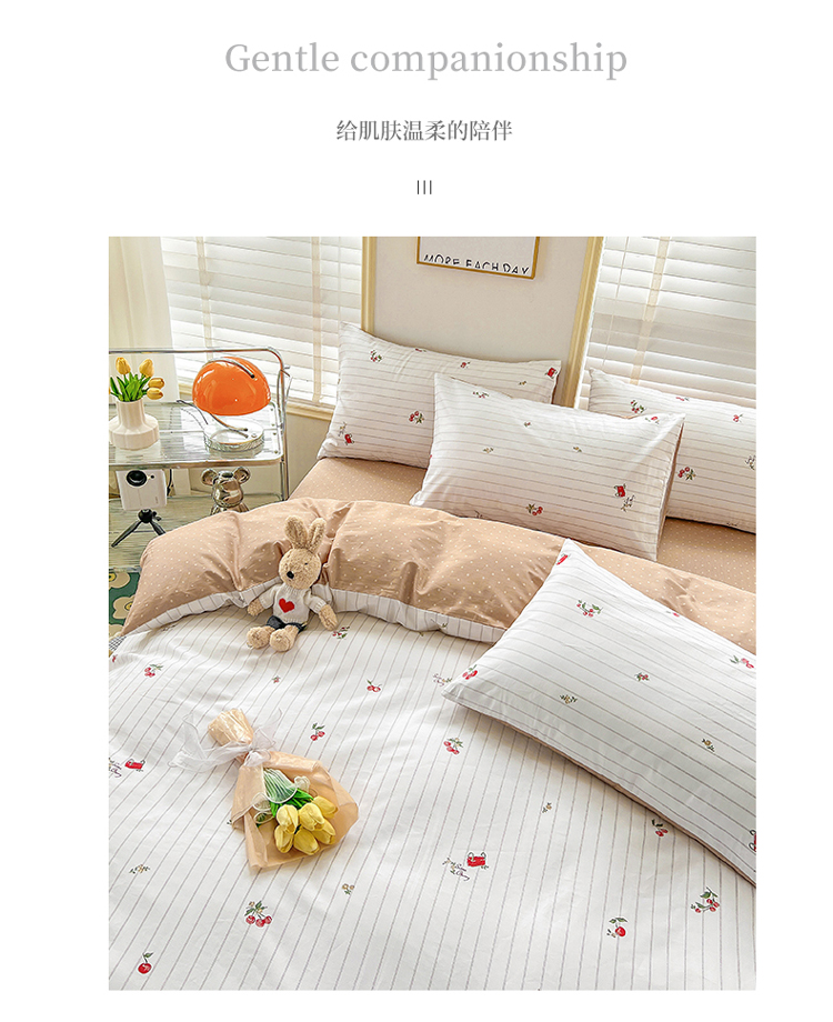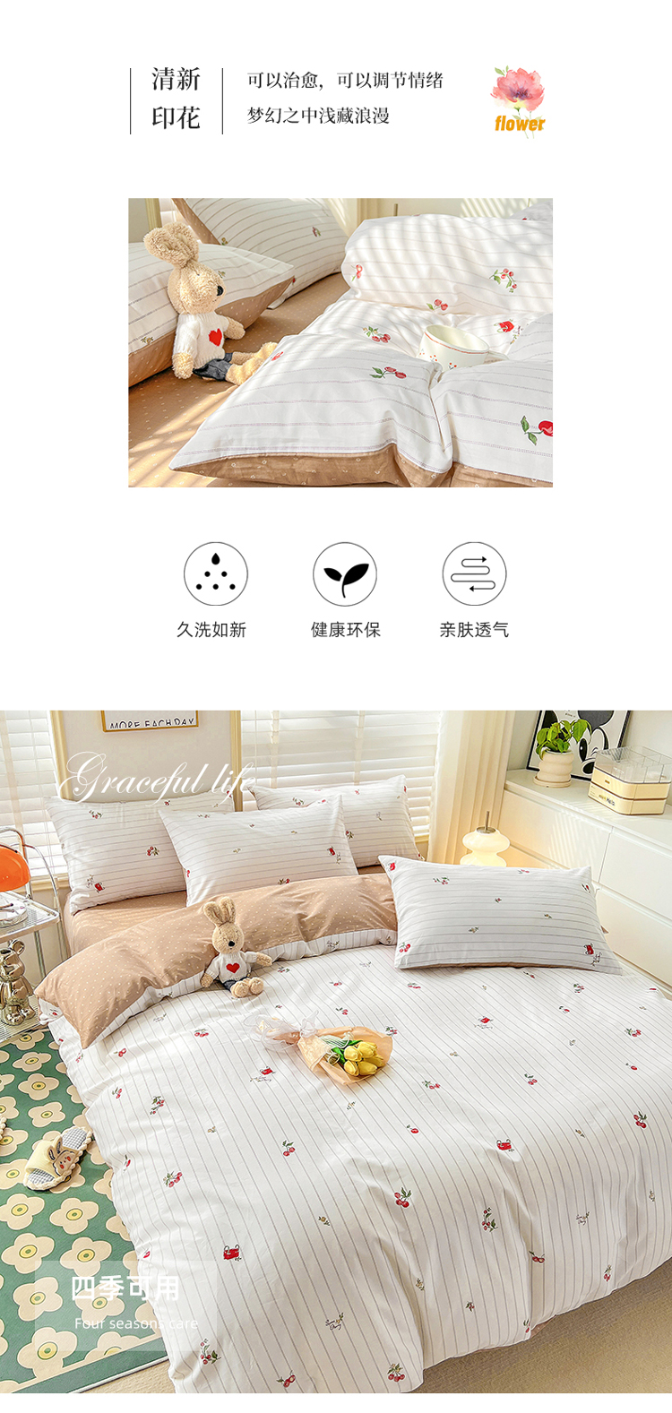 (总)捌月 2023新款13372全棉四件套竖纹印花系列,草莓园,兔小姐,小兰花,小甜心