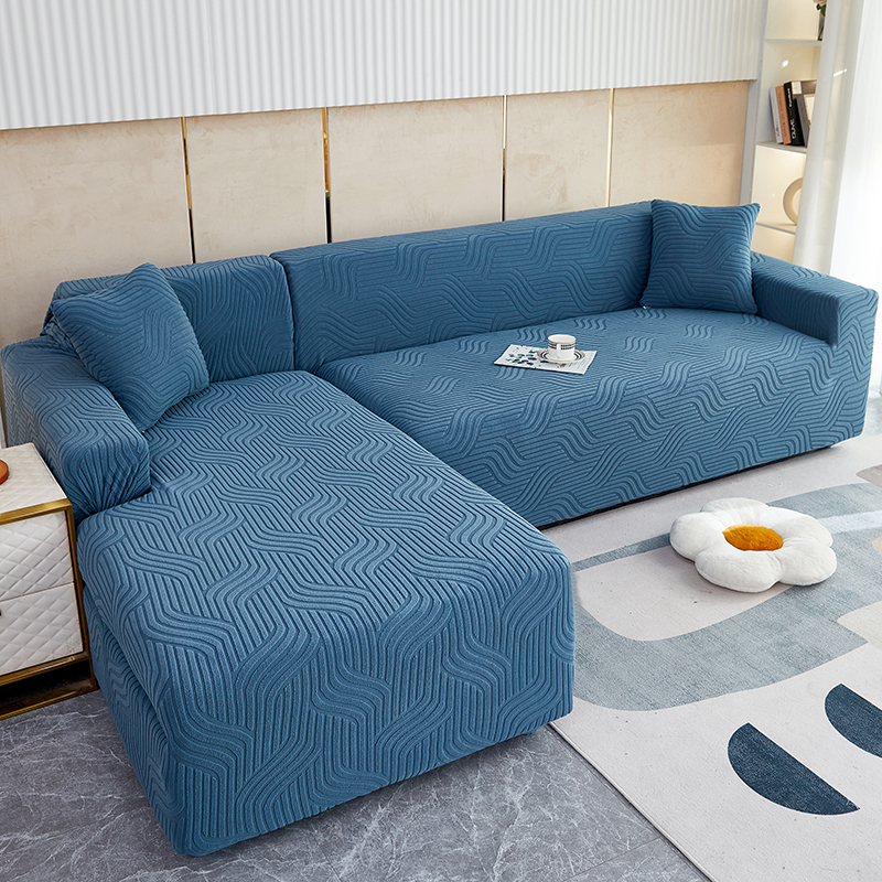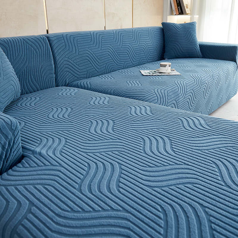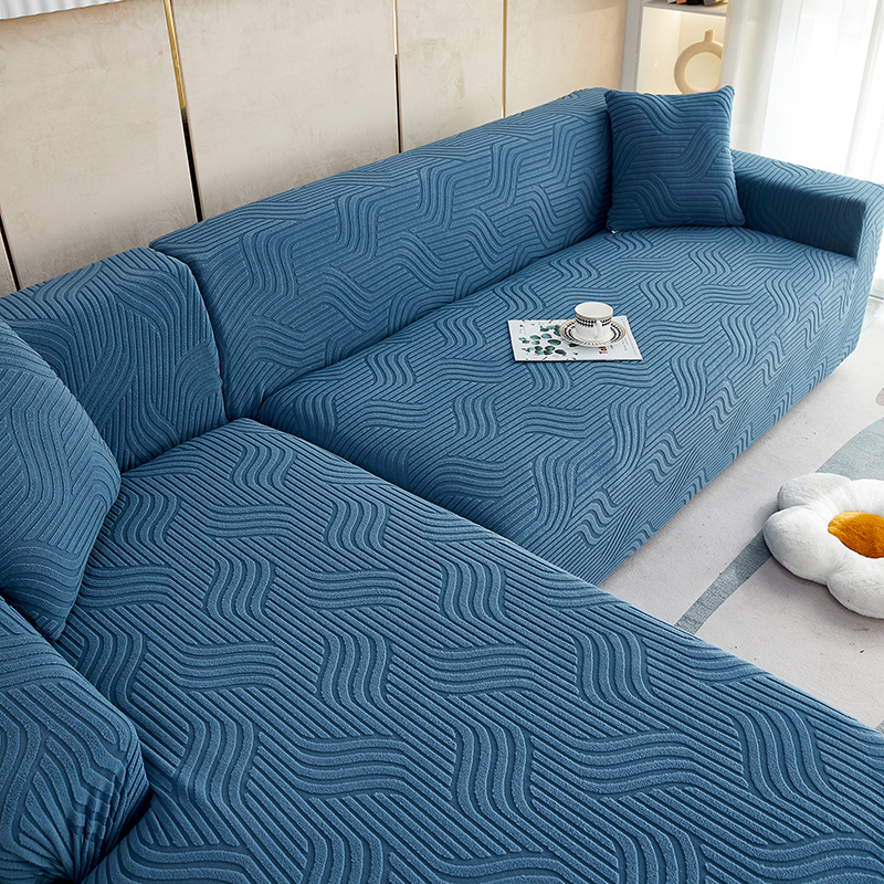 商品名称:逐日 2023新款提花沙发套 波浪系列 湖蓝
