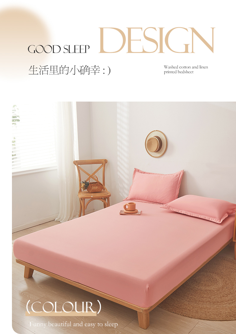 • 91家纺网 家纺一手货源 找家纺 新款水洗棉麻防尘抗菌单层床笠全包床罩 胭脂粉