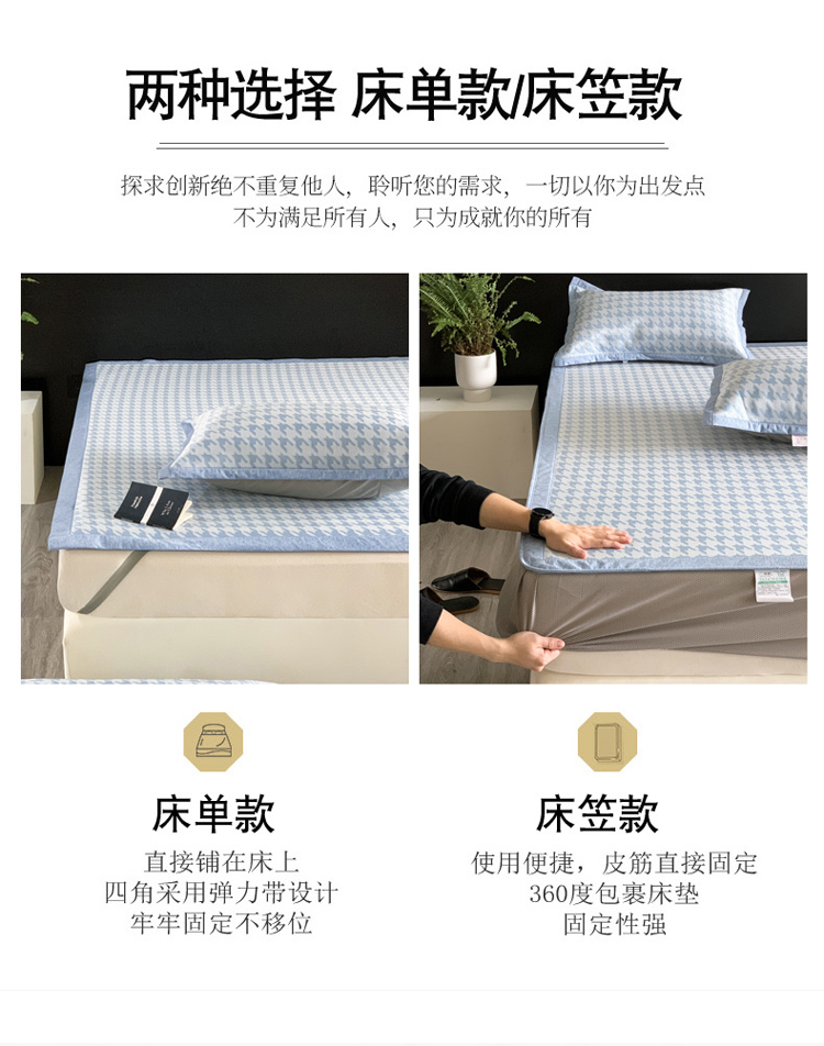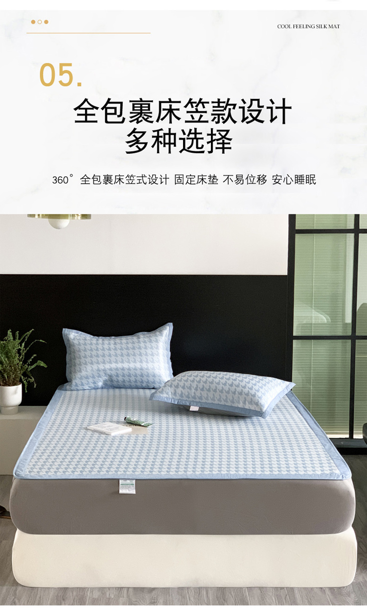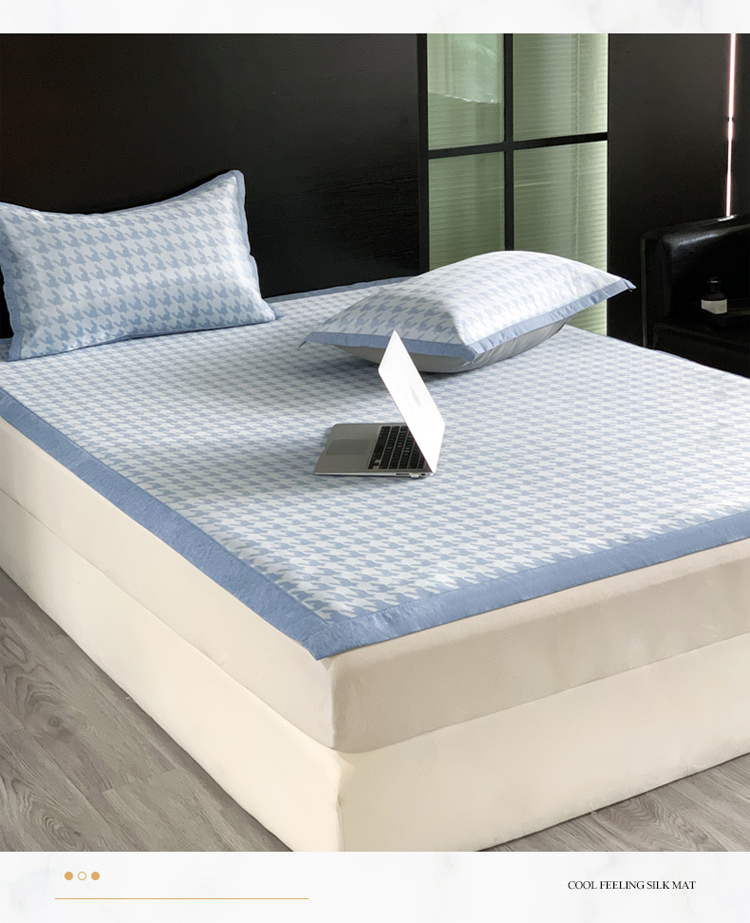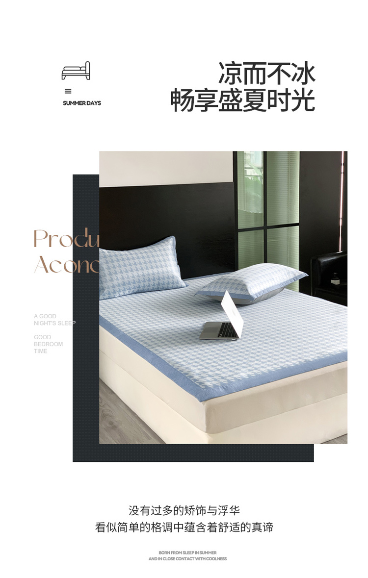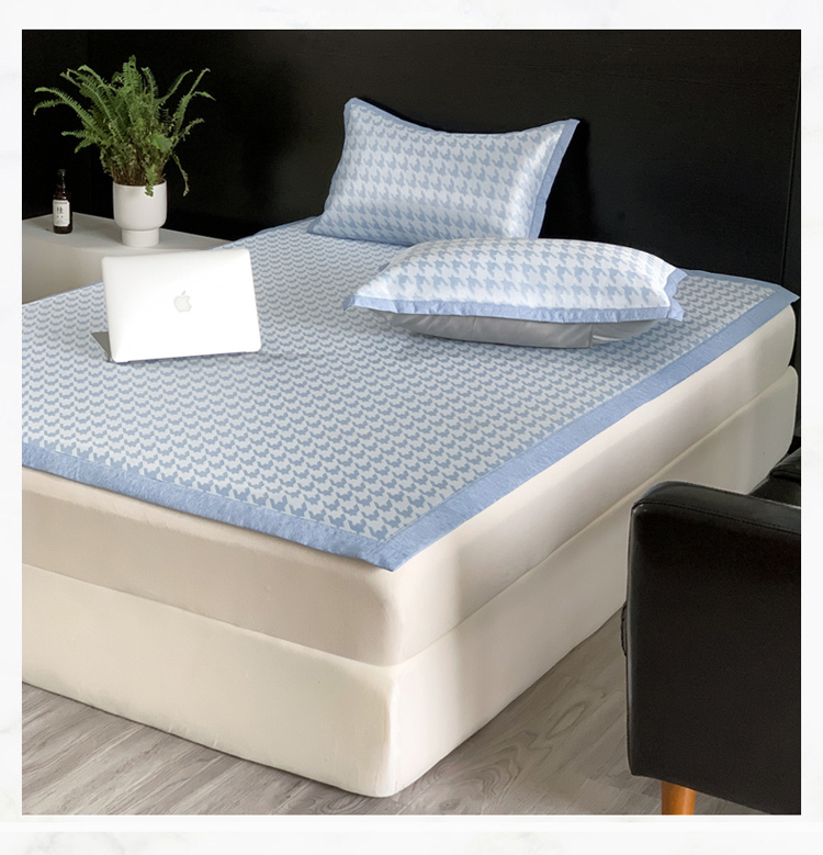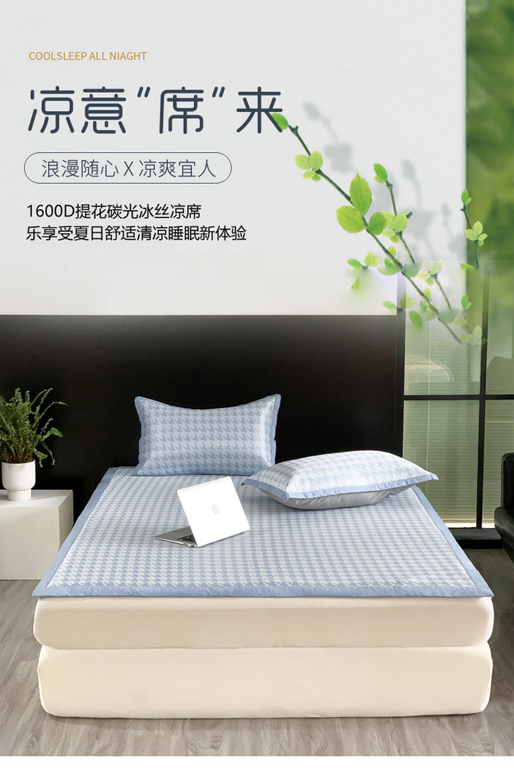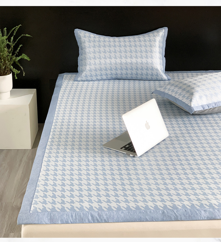 沐慕 2023新款提花冰丝席 千鸟格-蓝