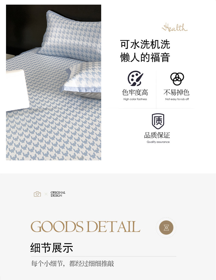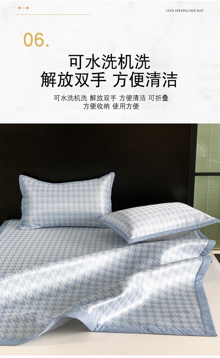 商品名称:沐慕 2023新款提花冰丝席 千鸟格-蓝