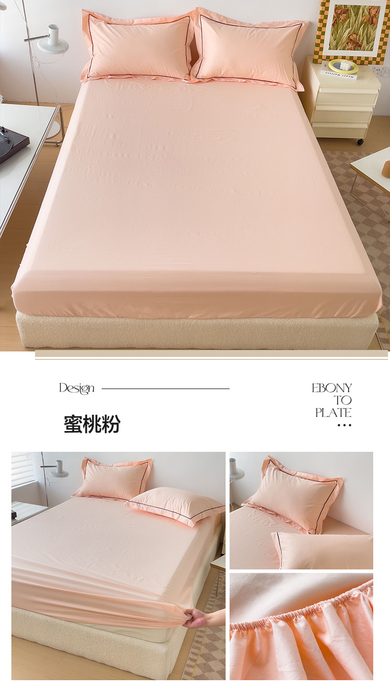 商品名称:2025床笠全棉纯色床笠双拼简约床笠三件套蜜桃粉