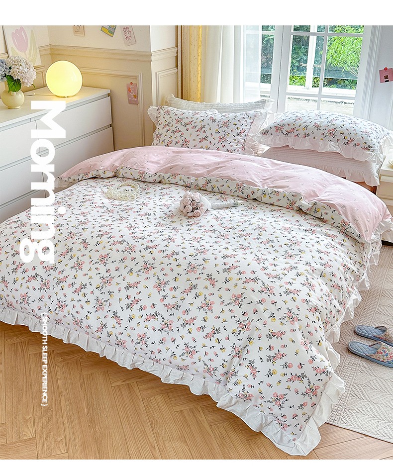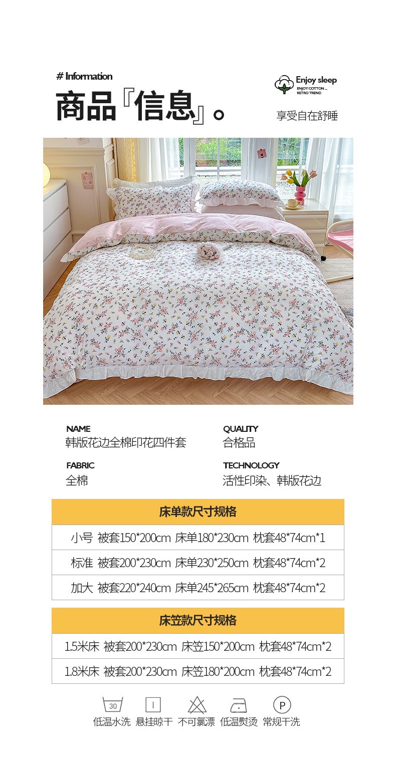 (总)清雅福 2026春夏新品韩版全棉双层纱镂空花边系列四件套,半岛花园-粉,半岛花园-兰,粉色回忆-紫,花丛小兔,落日余晖,芊叶,蔷薇花园,少女花季