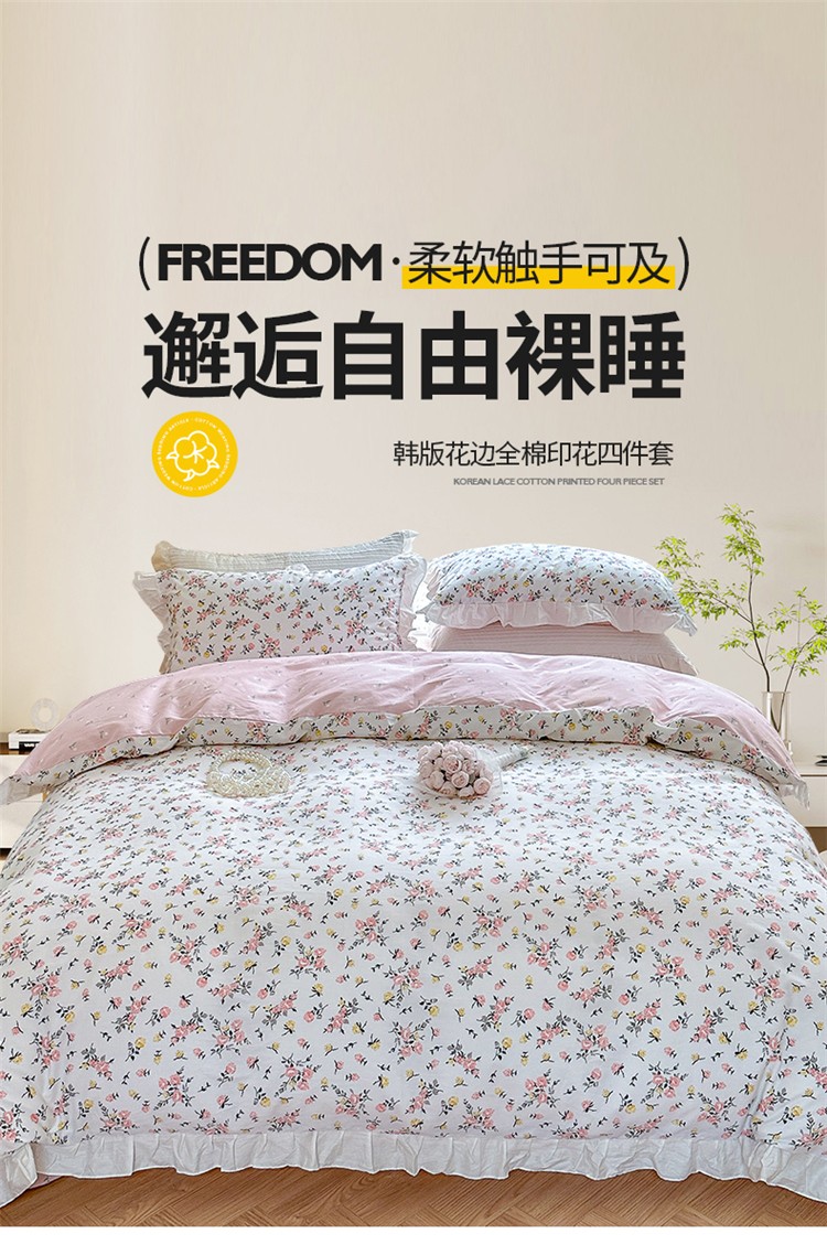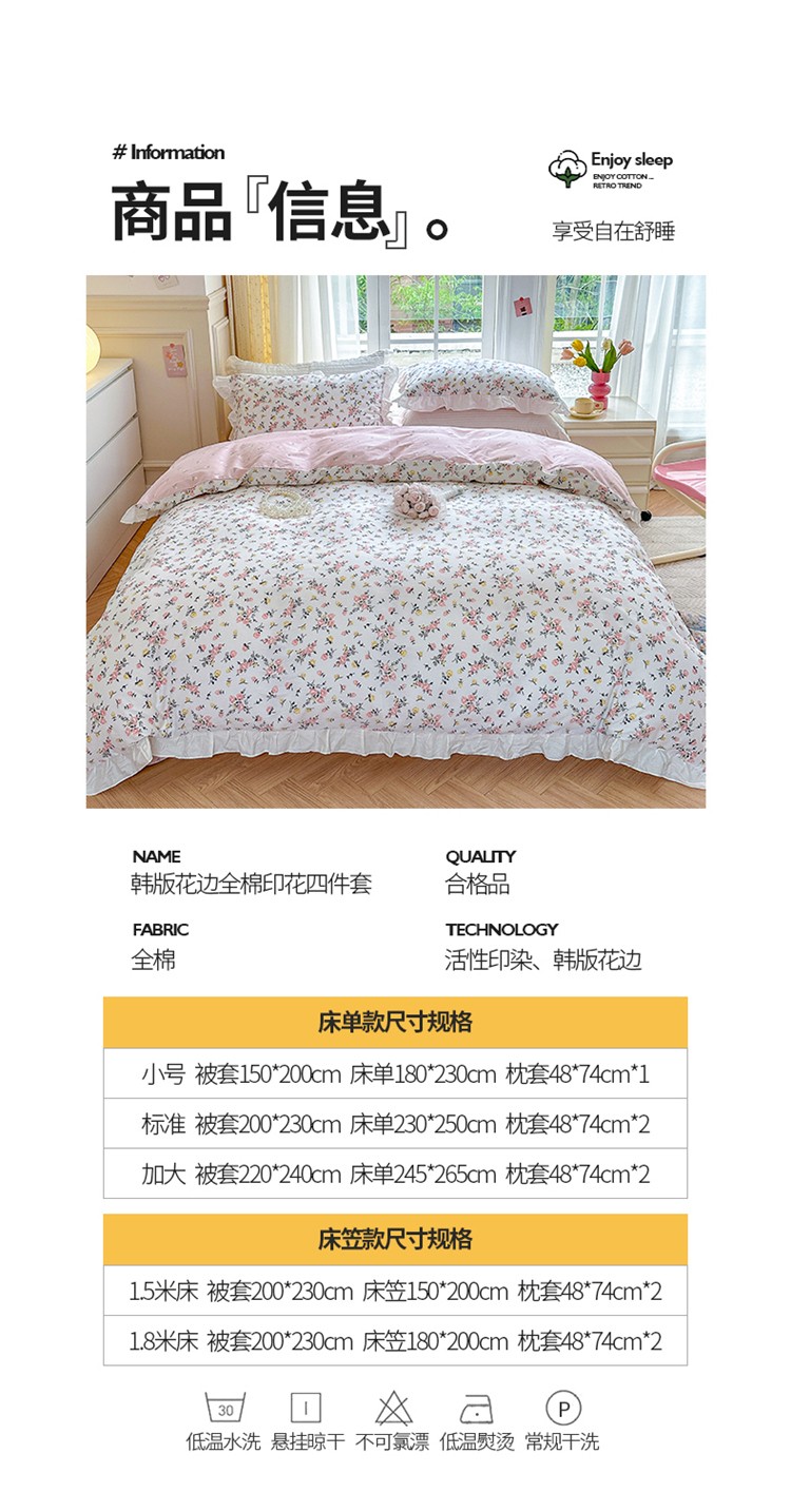 商品名称:清雅福 2024新款全棉13372韩版花边款系列单被套 好事花生