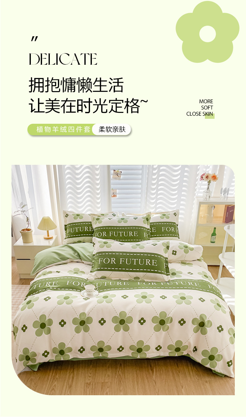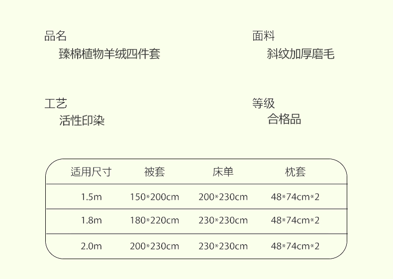 商品名称:棠颂 2023新款高克重加厚植物羊绒斜纹磨毛四件套 蓝田暖玉