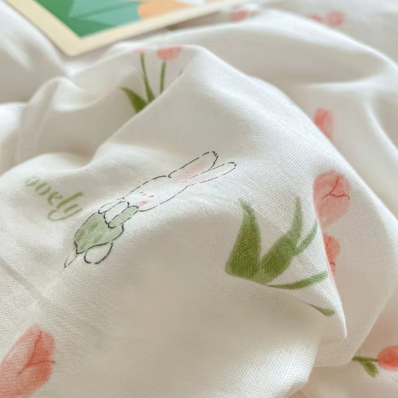 商品名称:玖玖爱 2023新款双层纱有氧纱印花四件套 香香兔