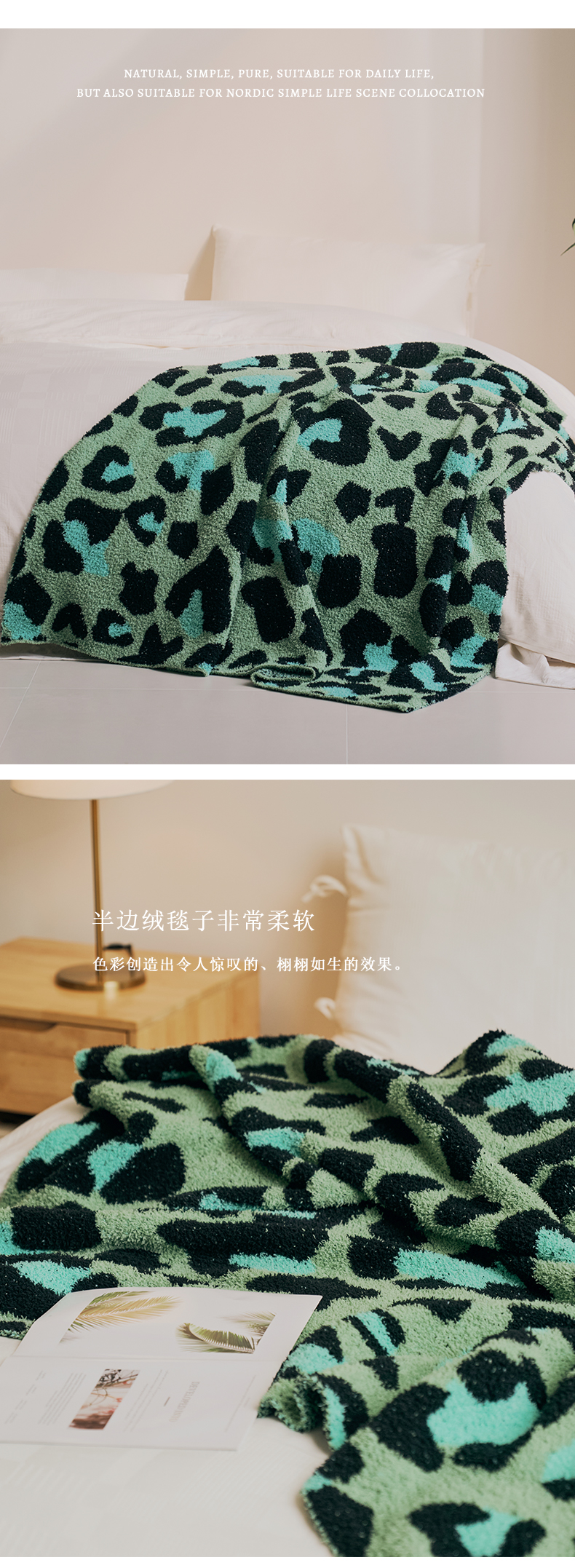 商品名称:暖绵绵2025新款彩豹半边绒休闲毯子空调毯 彩豹-绿色