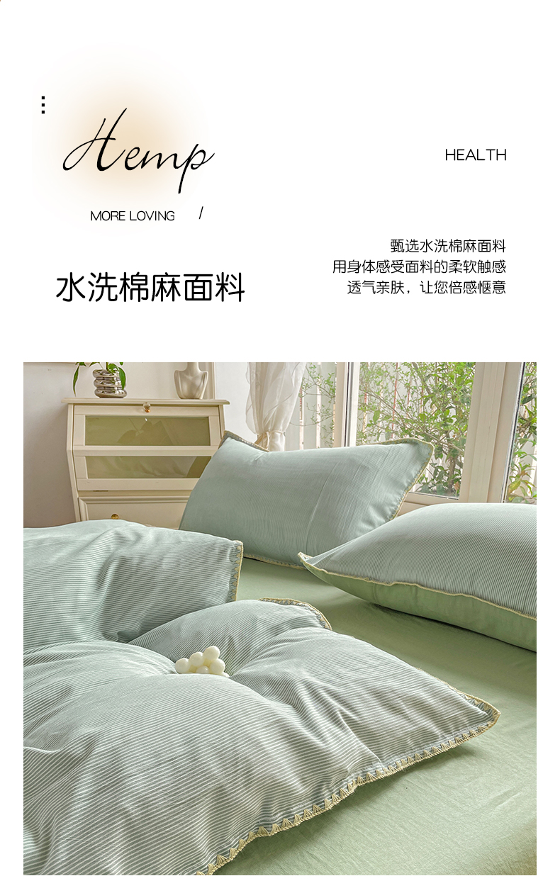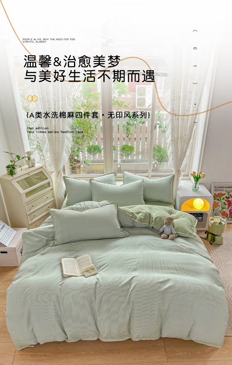 当前位置: 91家纺网 > 商品网购 > 床品套件 > 四件套 > 水洗棉四件套 > 无印风贝壳绣双层纱棉麻水洗四件套直播爆款 宁静-浅绿