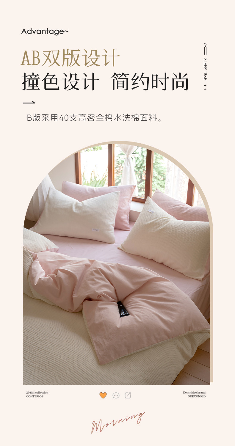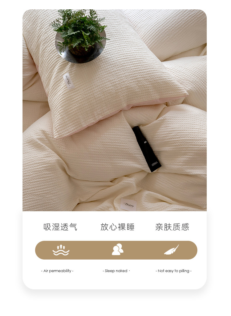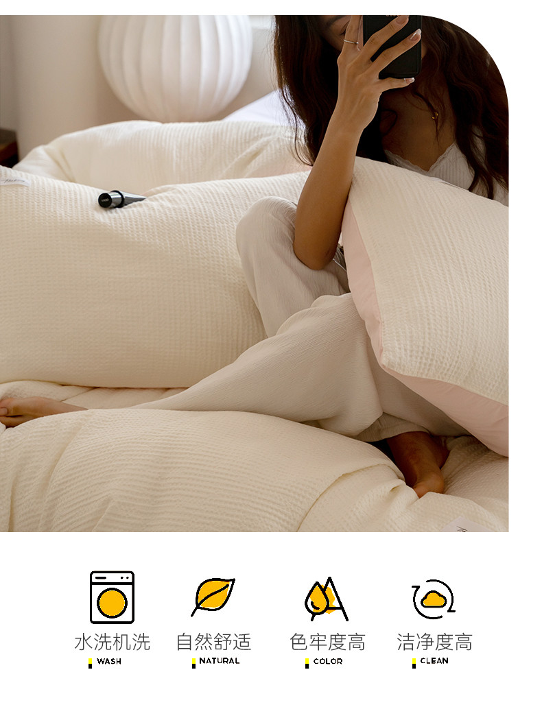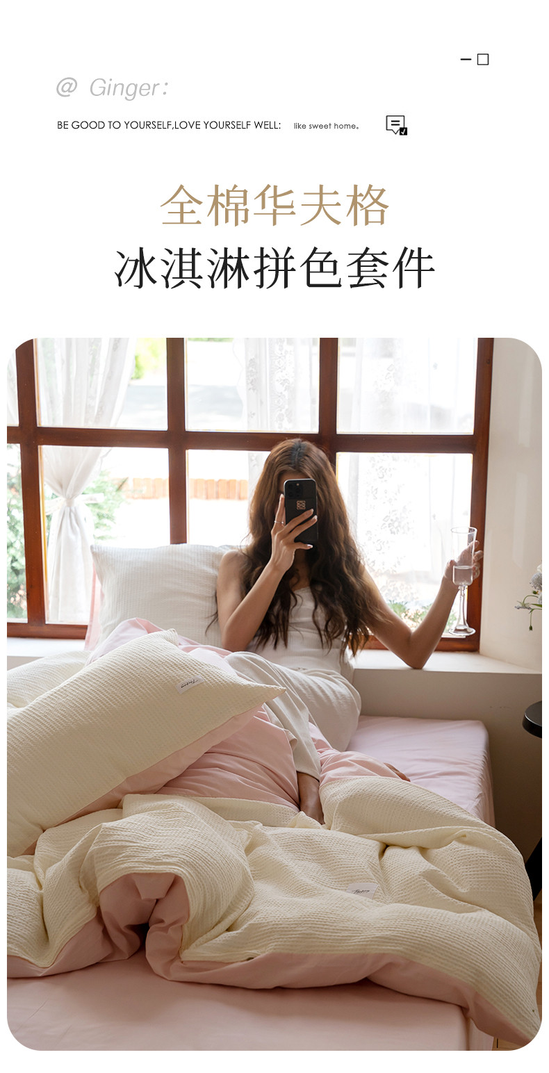 当前位置: 91家纺网 > 商品网购 > 床品套件 > 四件套 > 全棉普通四件套 > 时光里 2023新款60支全棉华夫格四件套 奶油白配夏芝粉