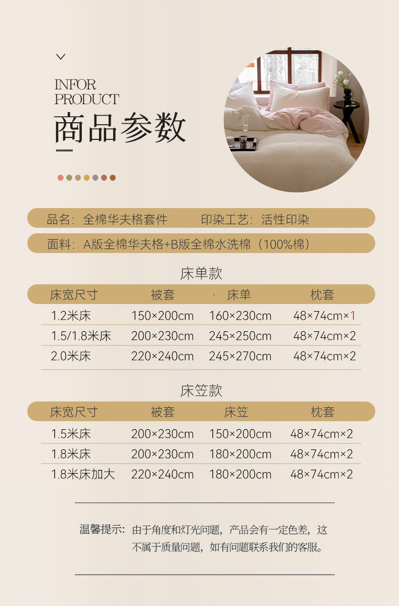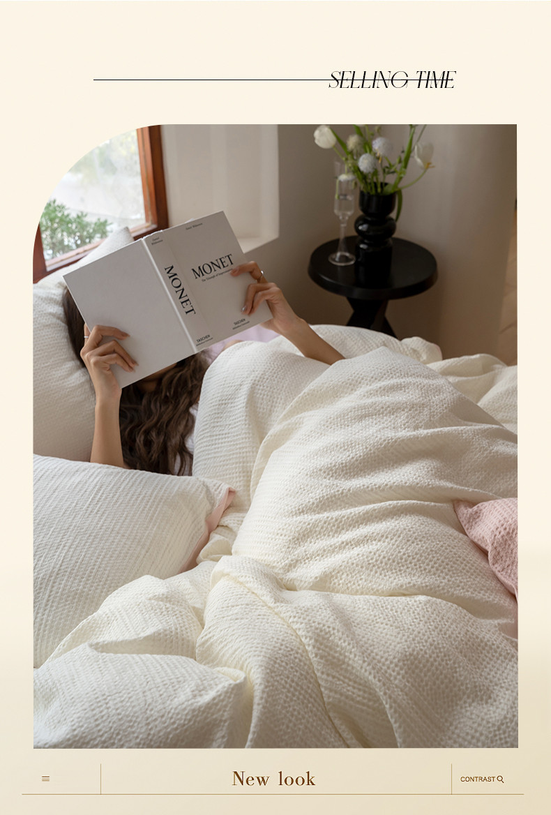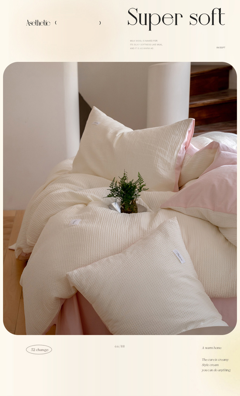当前位置: 91家纺网 > 商品网购 > 床品套件 > 四件套 > 全棉普通四件套 > 时光里 2023新款60支全棉华夫格四件套 奶油白配夏芝粉