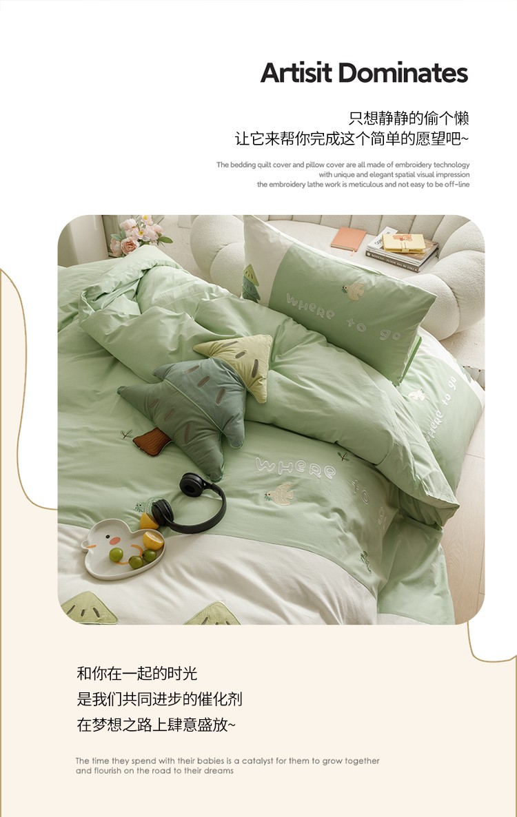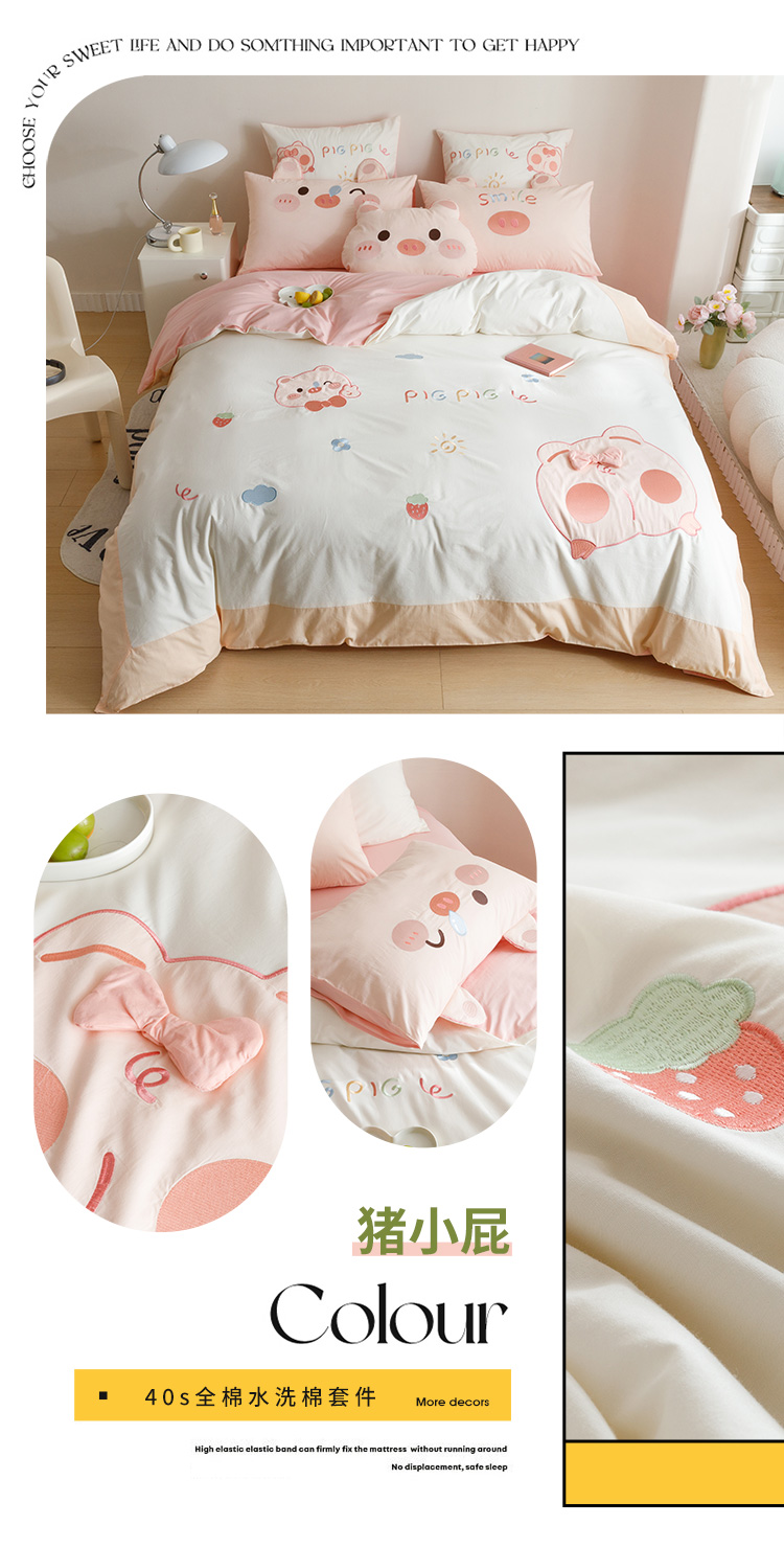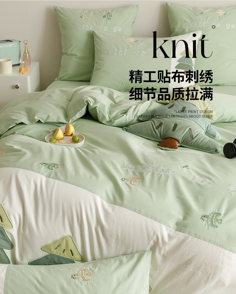 商品名称:A类40s全棉水洗棉贴布绣花四件套儿童三件套小清新儿童套件