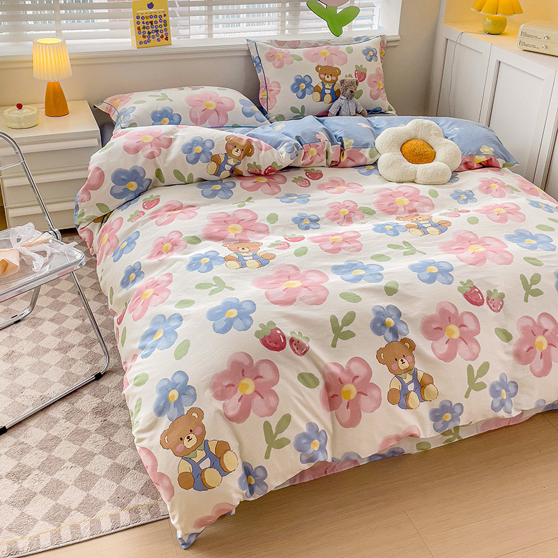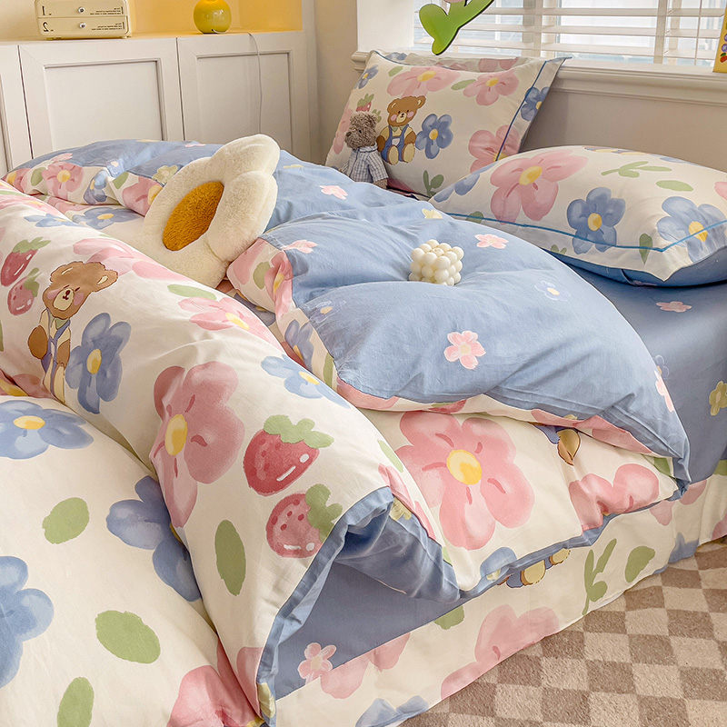 2024新款13372纯棉大版印+绣小清新款四件套 草莓之恋,草莓之恋