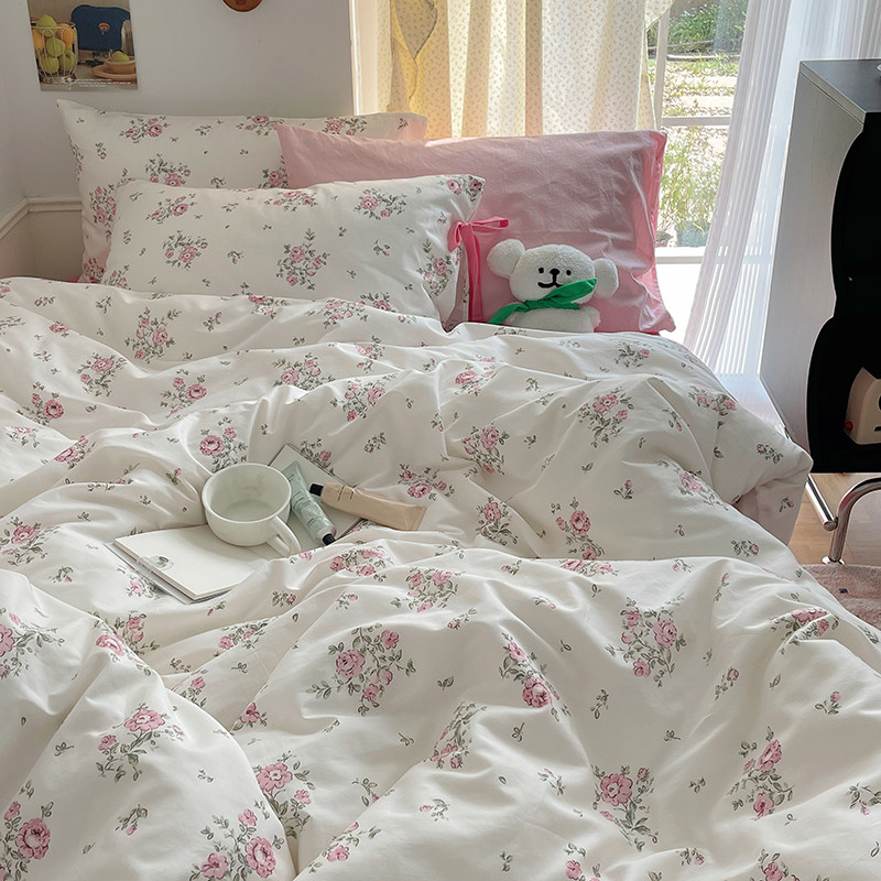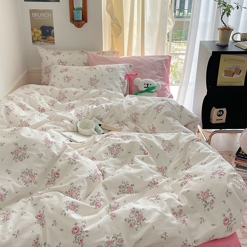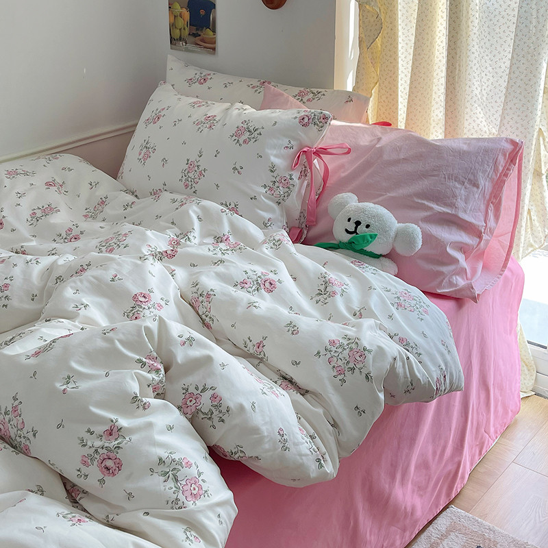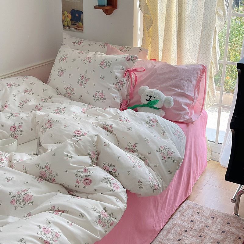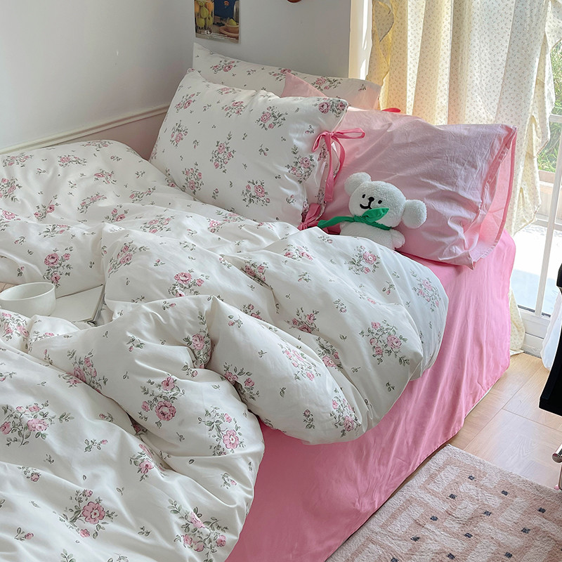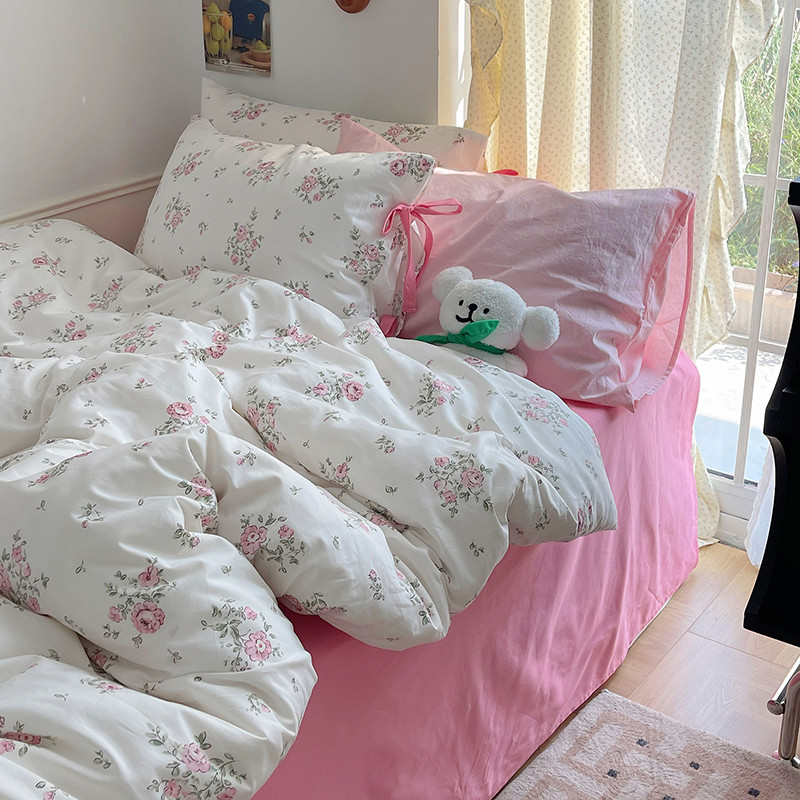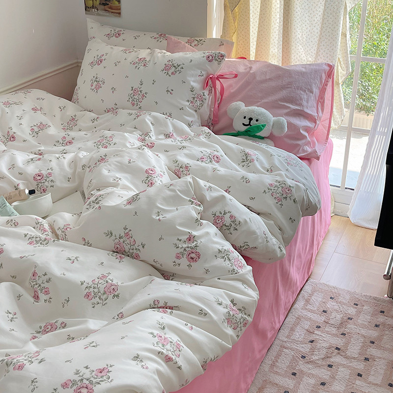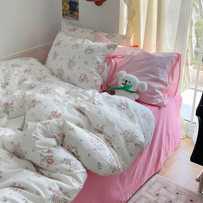 昔可 2023新款亲肤韩系全棉绑带款四件套 初恋蔷薇