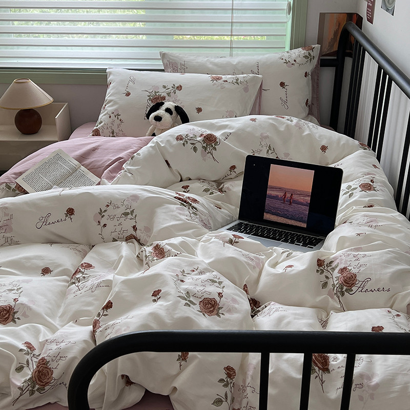 昔可 2023新款全棉卡通小清新四件套 中古字母玫瑰