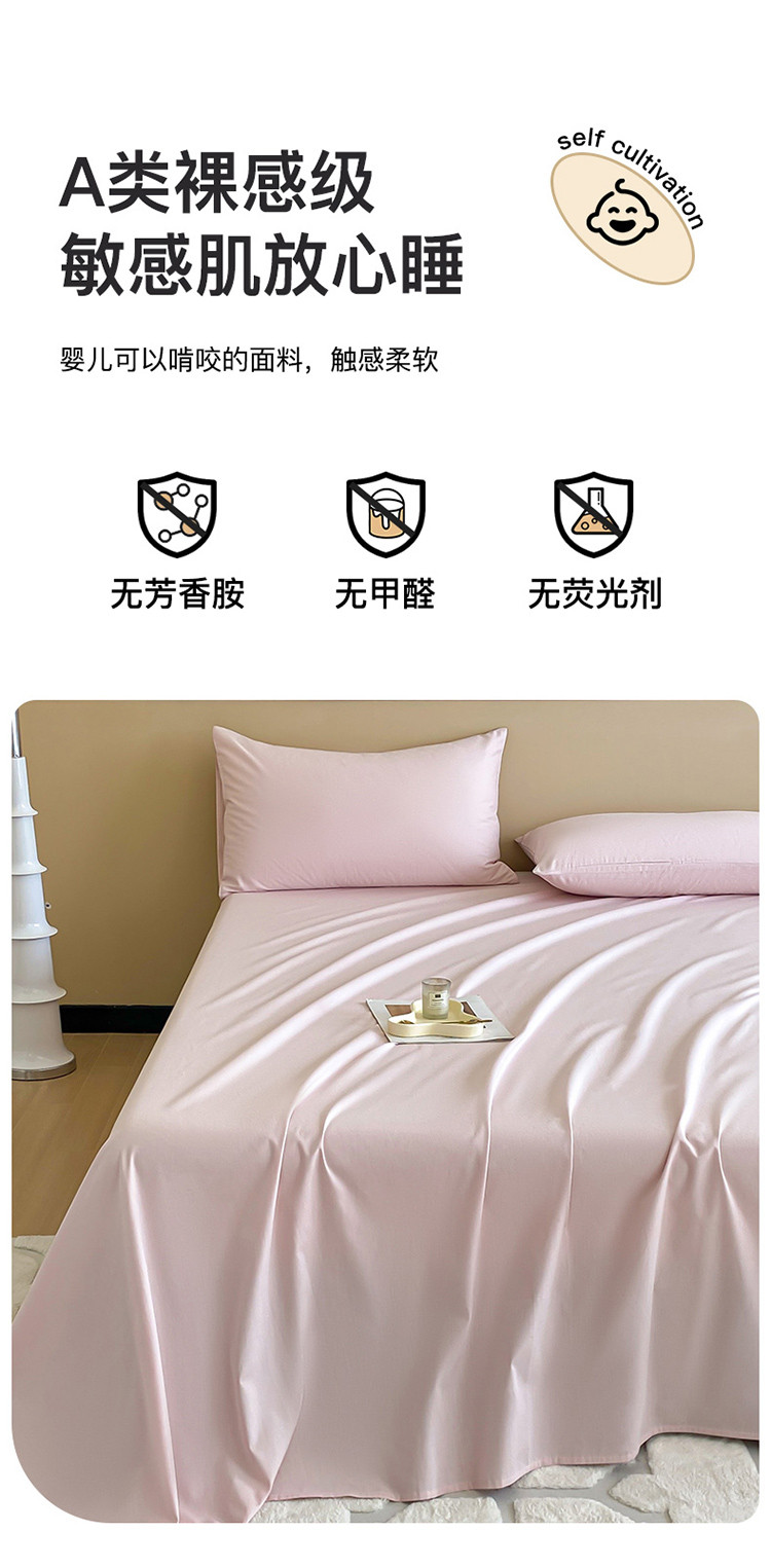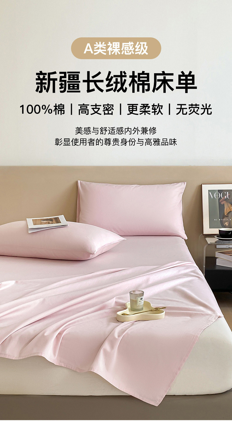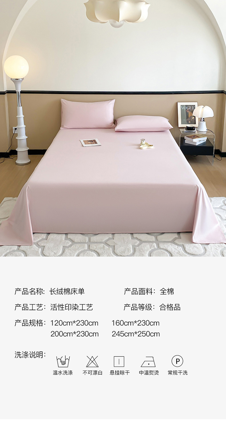 商品名称:丽美人 2023新款40支纯棉床单 樱花粉