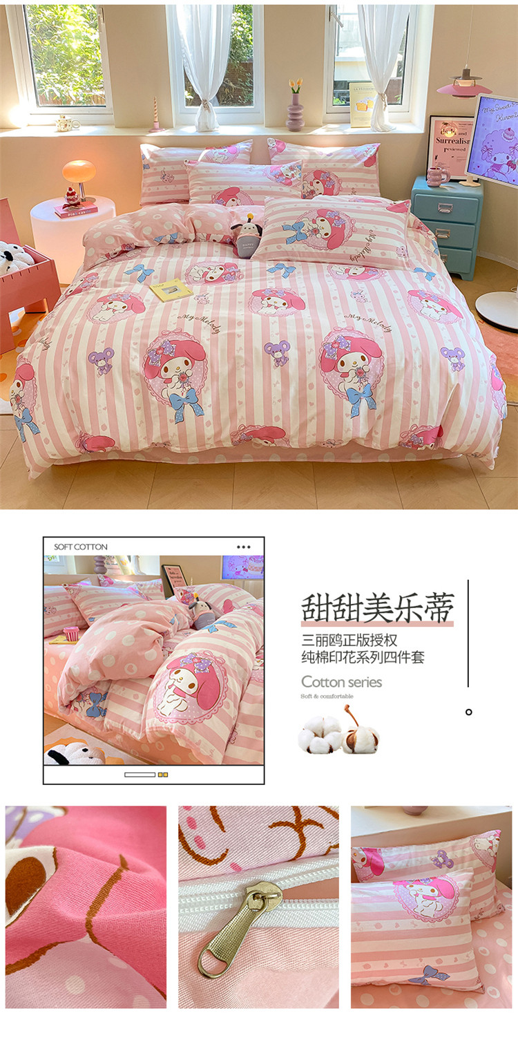 当前位置: 91家纺网 > 商品网购 > 床品套件 > 四件套 > 全棉普通四件套 > 桃子 2023新款三丽鸥正版授权纯棉印花系列四件套甜甜美乐蒂