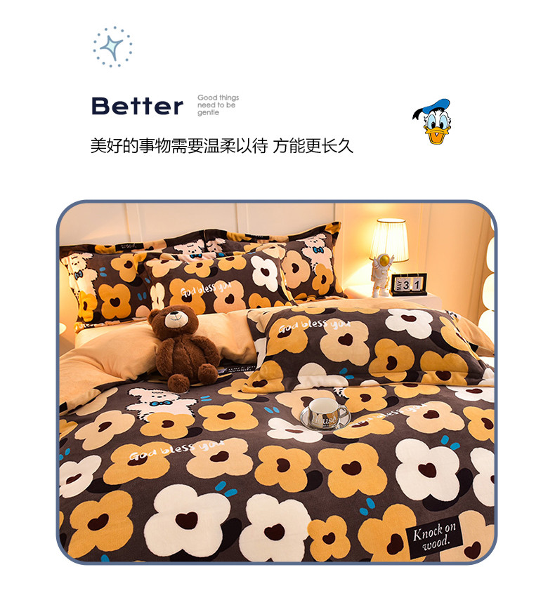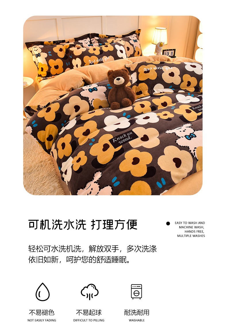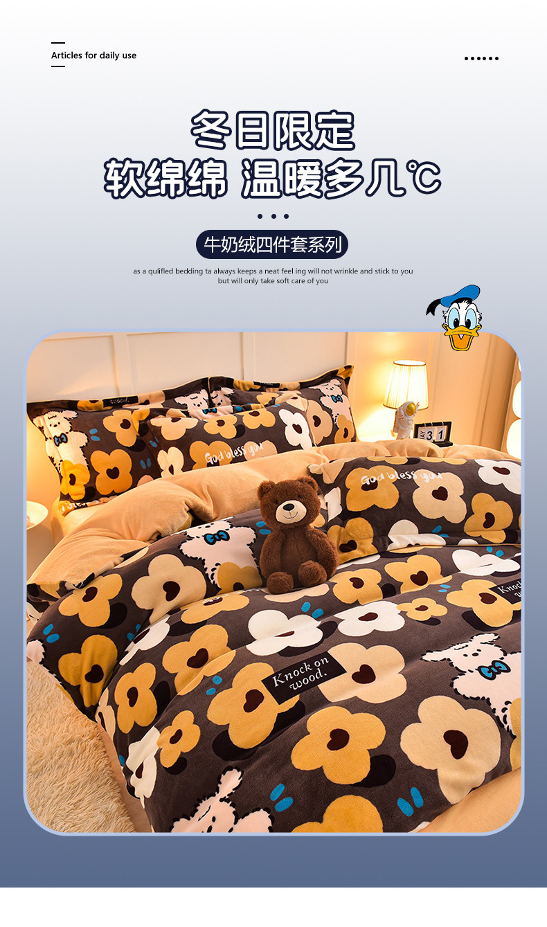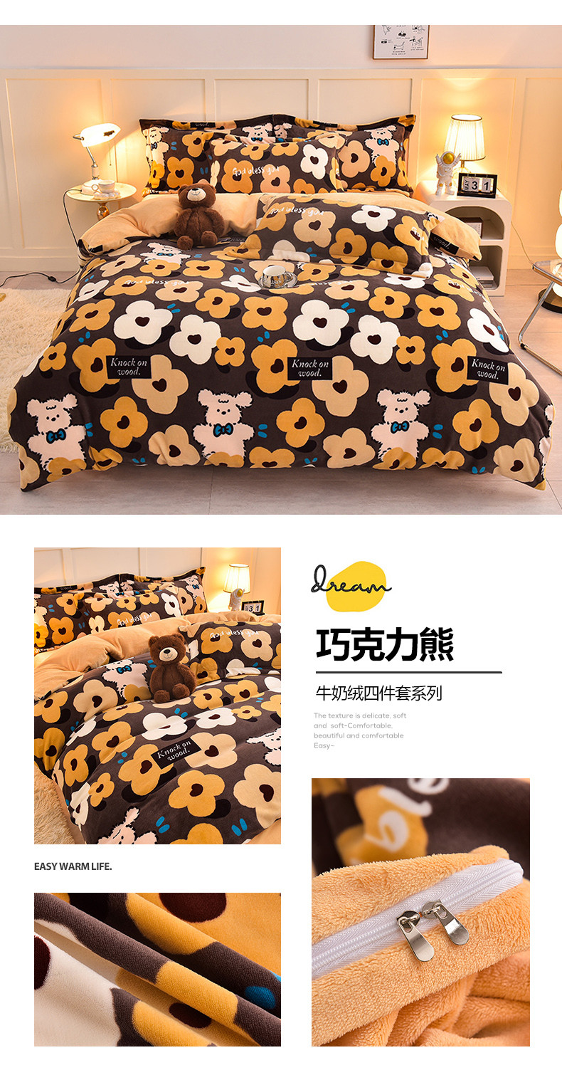 当前位置: 91家纺网 > 商品网购 > 床品套件 > 四件套 > 牛奶绒四件套 > 简一 2024新款牛奶绒四件套 巧克力熊