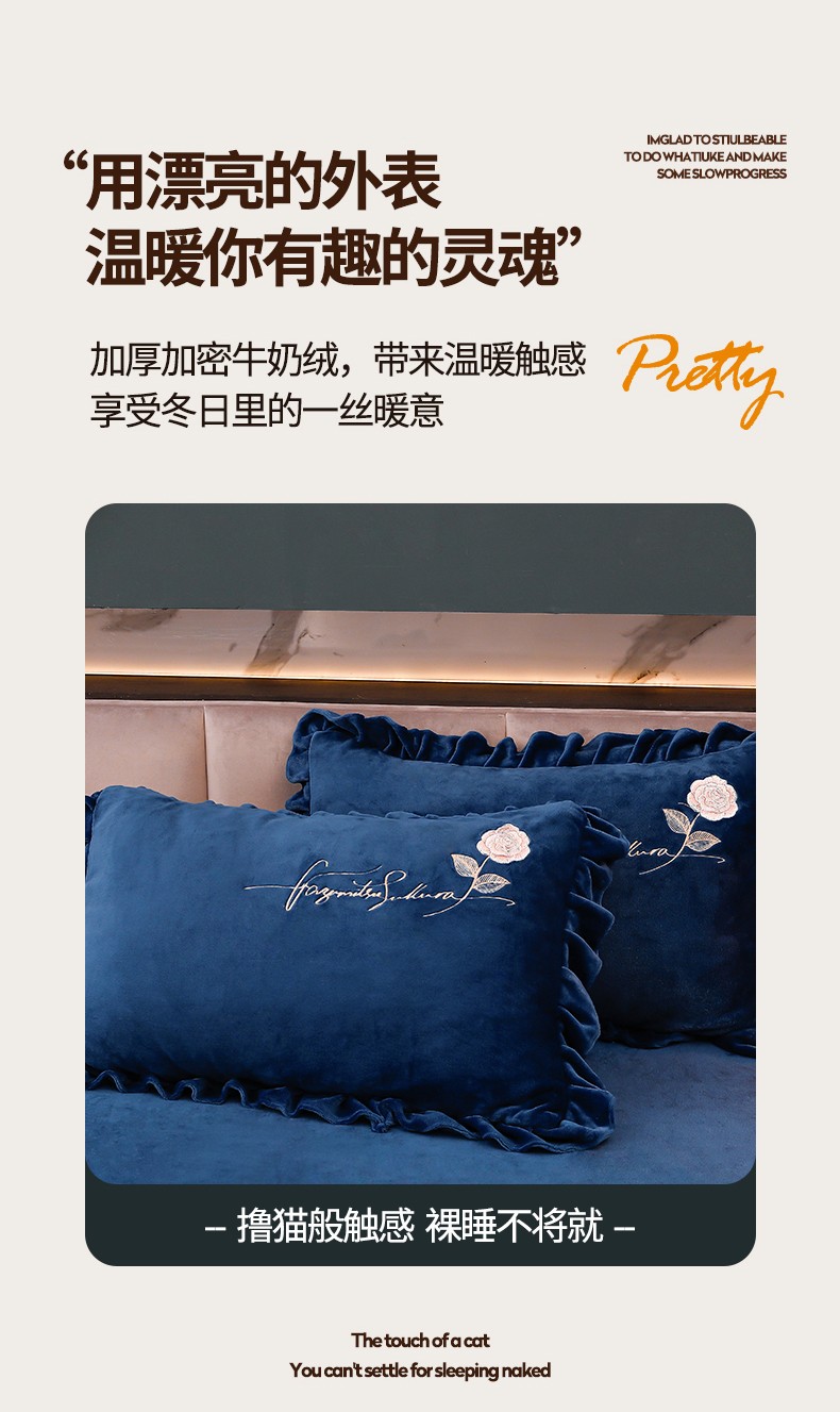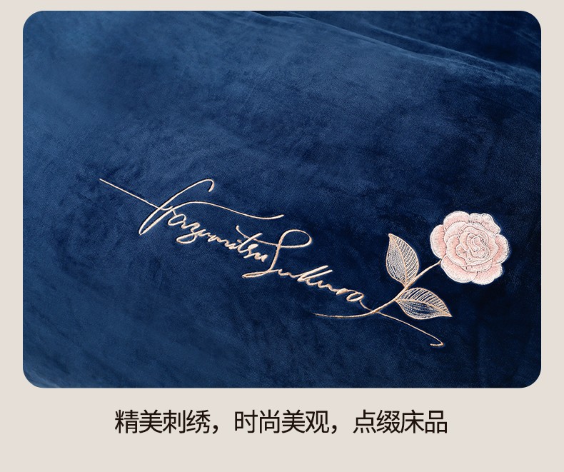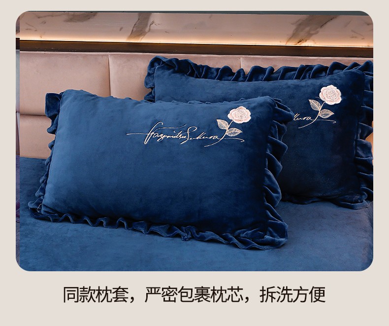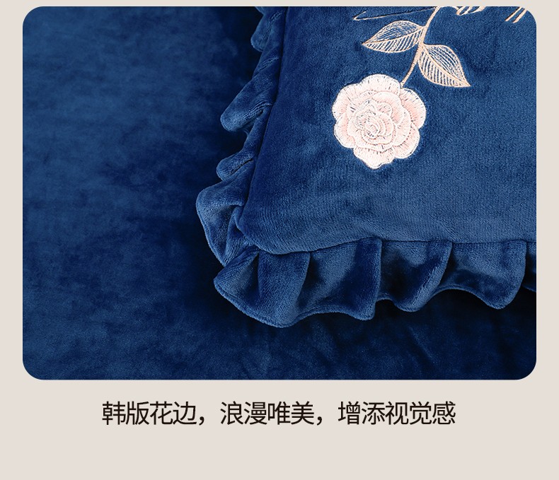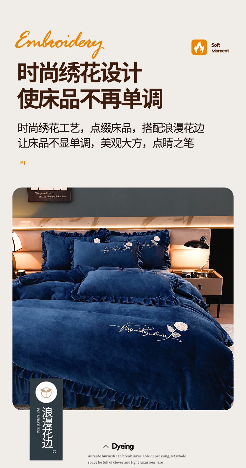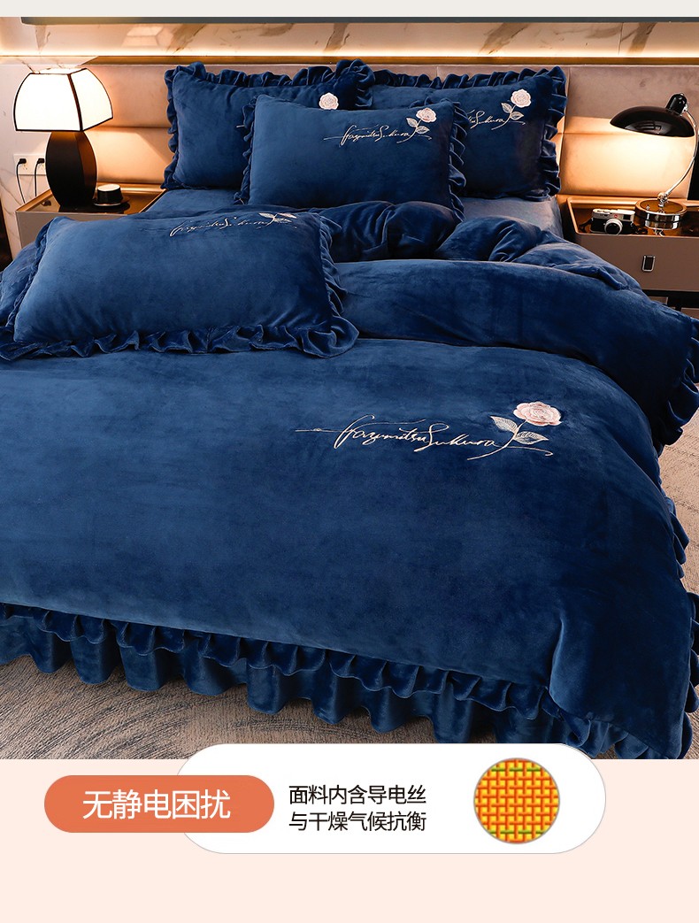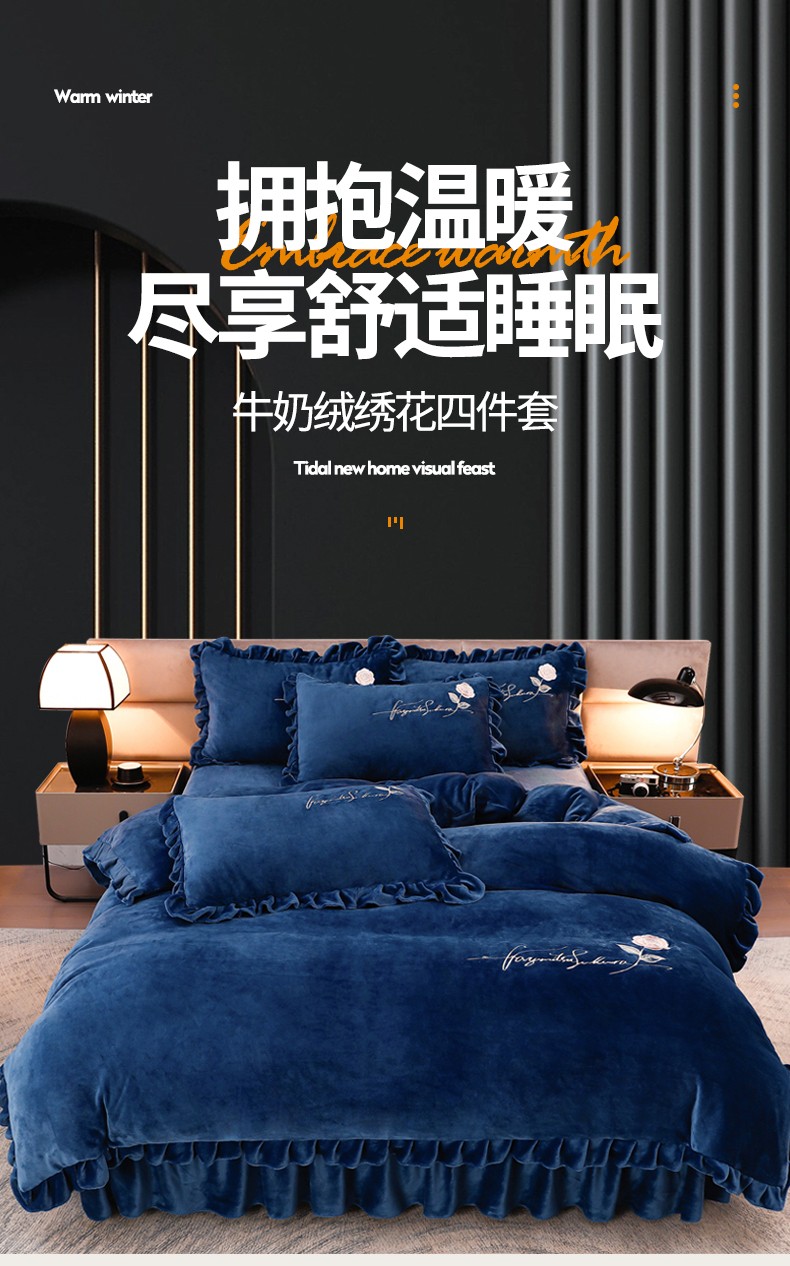 商品名称:绣女坊 2024新款韩版花边绣花牛奶绒四件套 蓝色