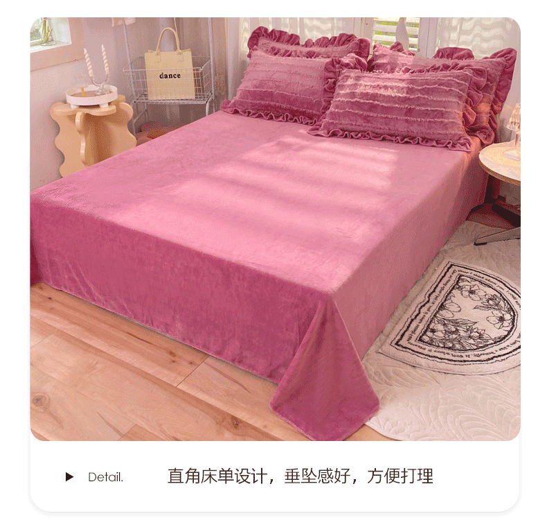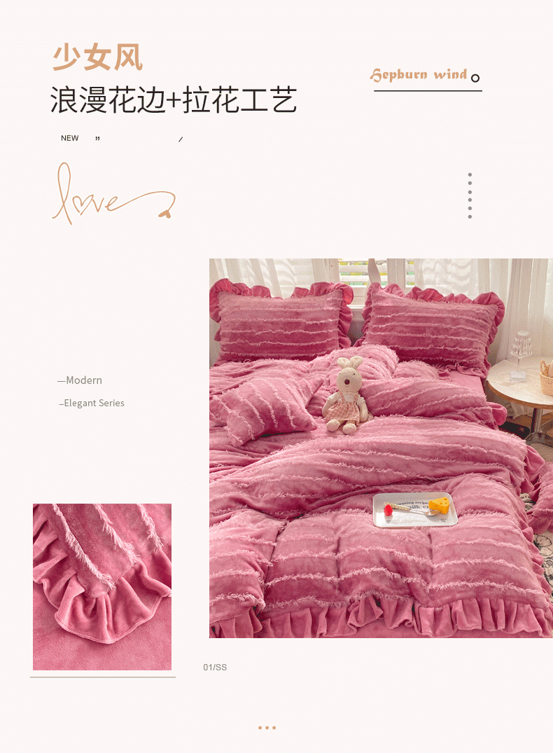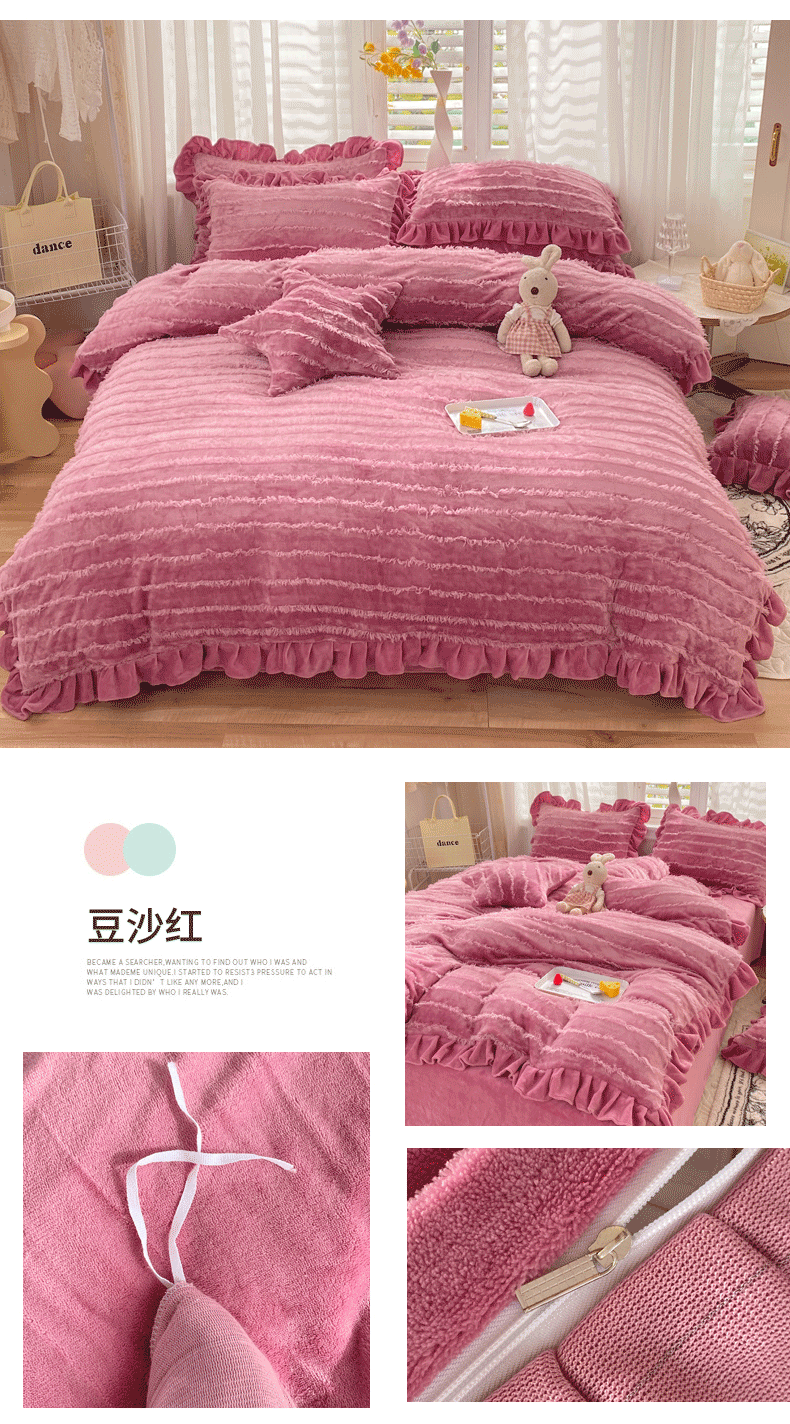 丝印良品 2024直播秋冬高克重500克床裙款泡泡四件套纯色印花泡泡-甜心粉,泡泡-甜心粉