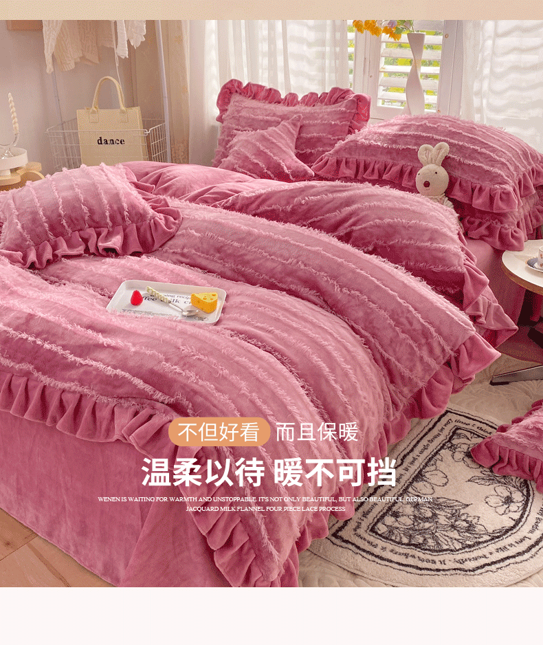 商品名称:丝印良品 2023新款高端牛奶绒提花四件套 豆沙红