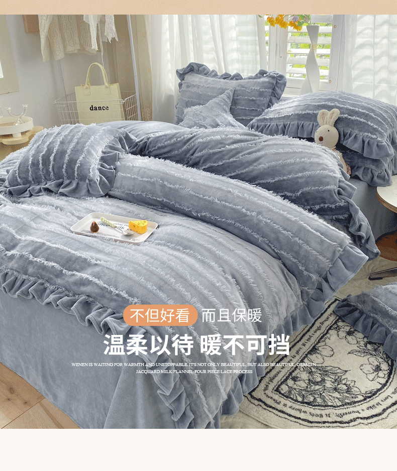 商品名称:绒世界 2024新款高端牛奶绒提花四件套 摩登灰