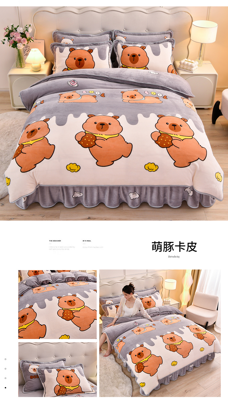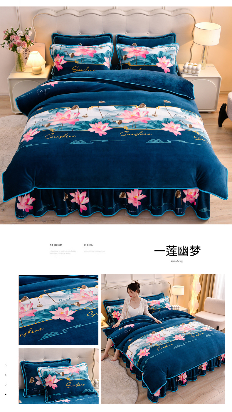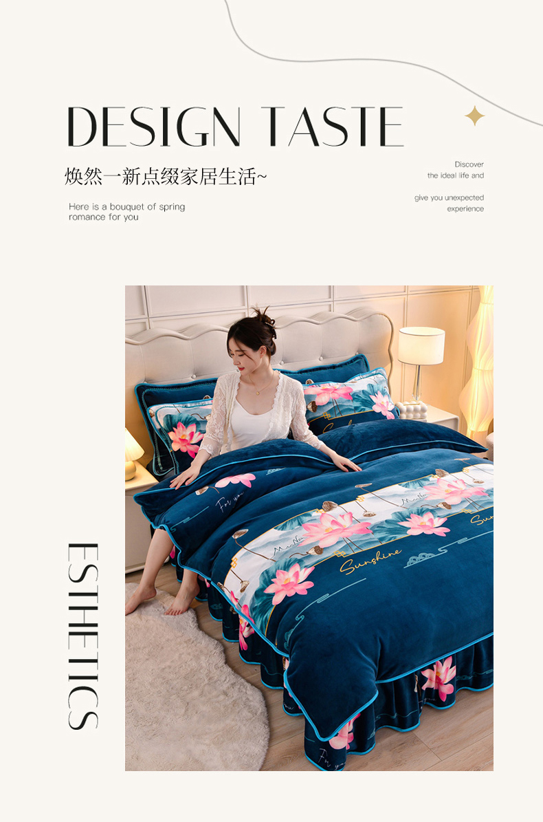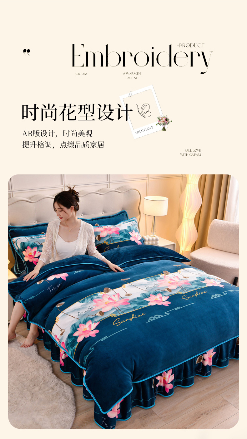 商品名称:(总)绒宴 2025新款8.5斤牛奶绒金貂法莱绒床裙款保暖四件套